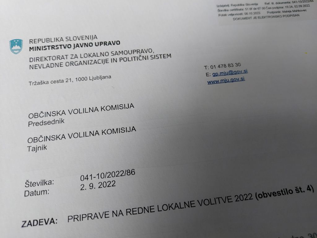 20. novembra 2022 bodo redne volitve župana in članov občinskega sveta. Za dan razpisa volitev, s katerim začno teči roki za volilna opravila se šteje ponedeljek, 5. september 2022.