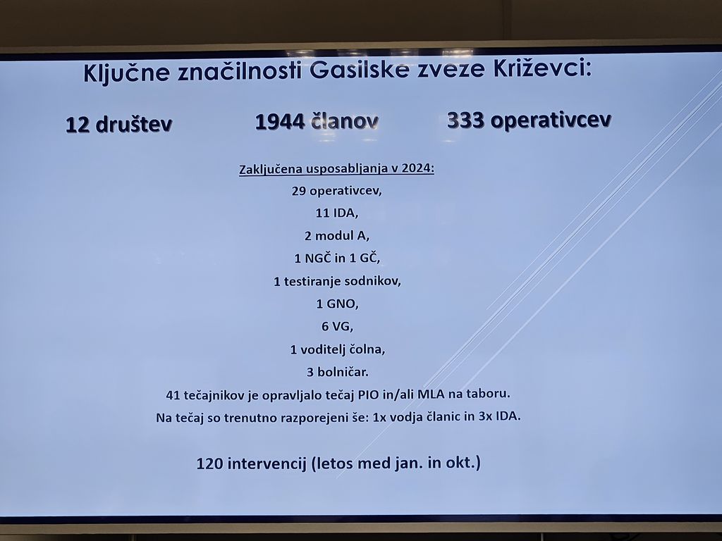 Predsednik Gasilske zveze Križevci Danijel Lesničar je predstavil delo Gasilske zveze Križevci v okviru katere deluje 12 gasilskih društev, v katere je včlanjenih 1944 članov, 333 operativcev.