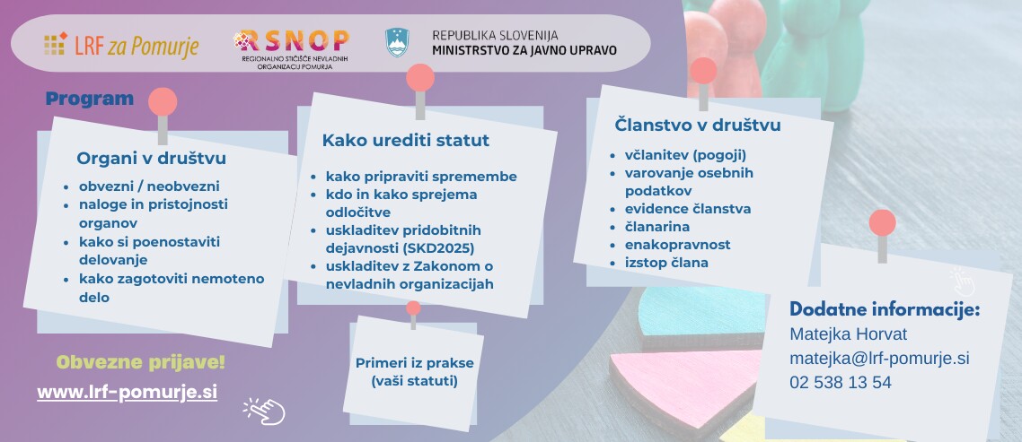 Želimo si, da bi delavnica bila čim bolj praktična, zato vas vabimo, da s seboj prinesete vaše statute oz. temeljne akte.