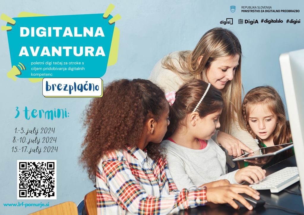 Še nekaj tednov učenja in poletne počitnice bodo tu! Z njimi pa čas za BREZPLAČNE dogodivščine in odkrivanje digitalnega sveta: POLETNI DIGI-TABOR ZA OTROKE (Digitalna avantura), katerega cilj je pridobitev temeljnih digitalnih kompetenc za otroke.