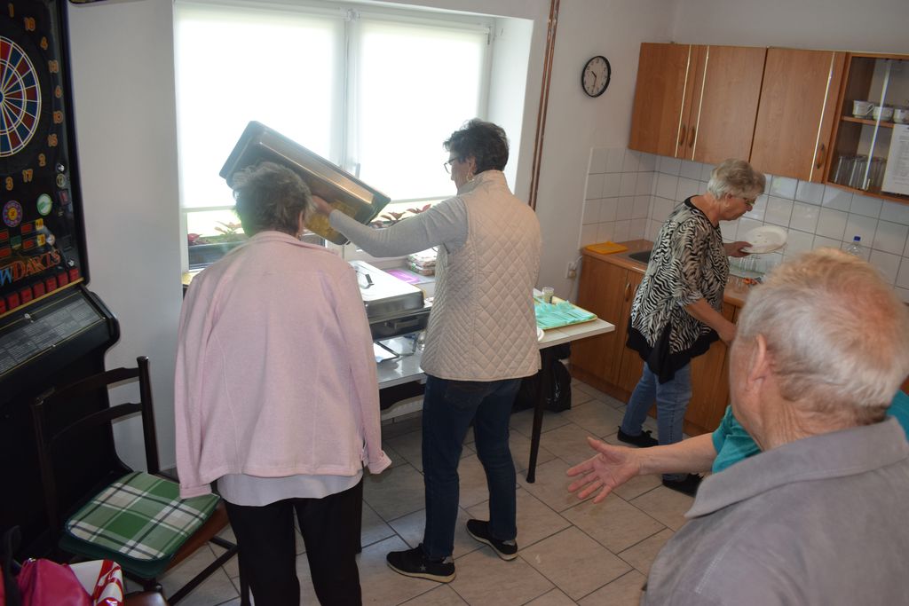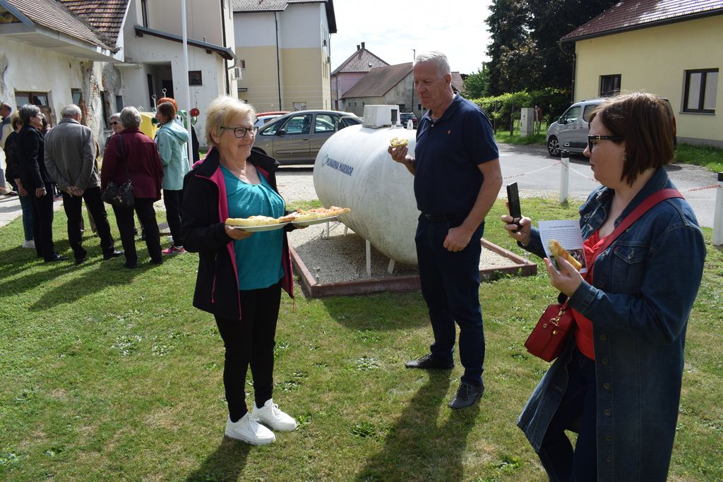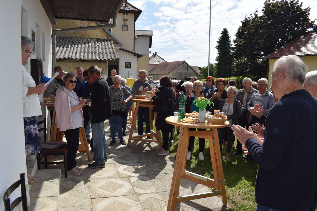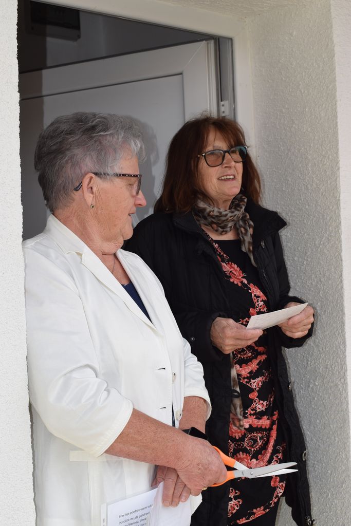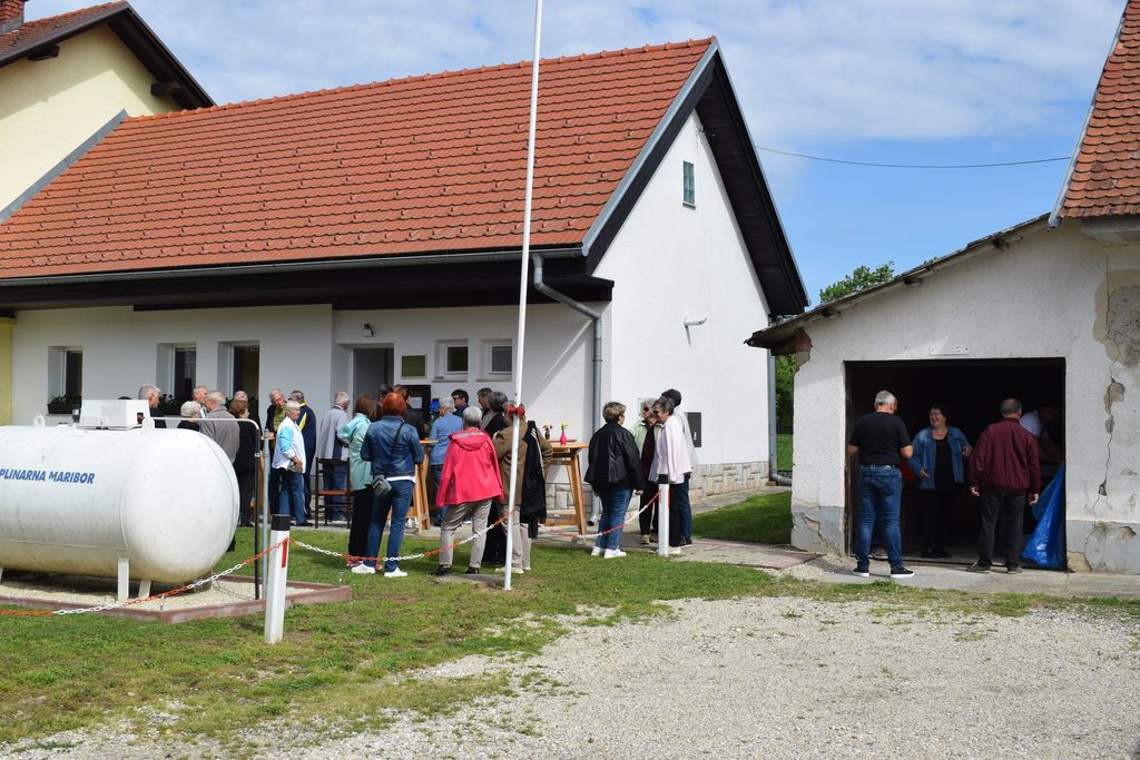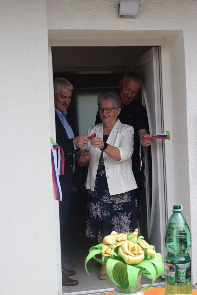 Posebno zahvalo pa je izrekla delovnim prostovoljcem: Miranu, Marjanu, Andreju, Vladuju in Srečku. Trak na vhodnih vratih pa so prerezali kar trije: predsednica Milica, župan Slavinec in vodja prostovoljcev – izvajalcev Miran. Po svečanosti in ogledu prostorov pa seveda ni manjkala jedača in pijača.
