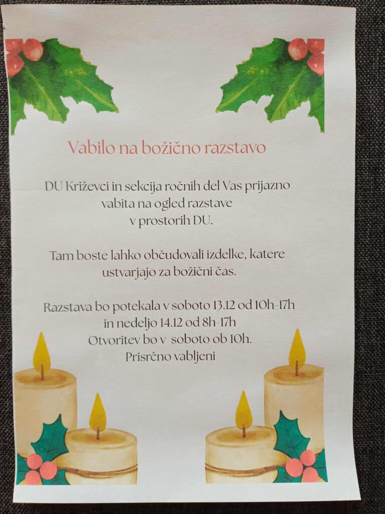 VABILO NA BOŽIČNO RAZSTAVO DRUŠTVA UPOKOJENCEV KRIŽEVCI - SEKCIJA ROČNIH DEL