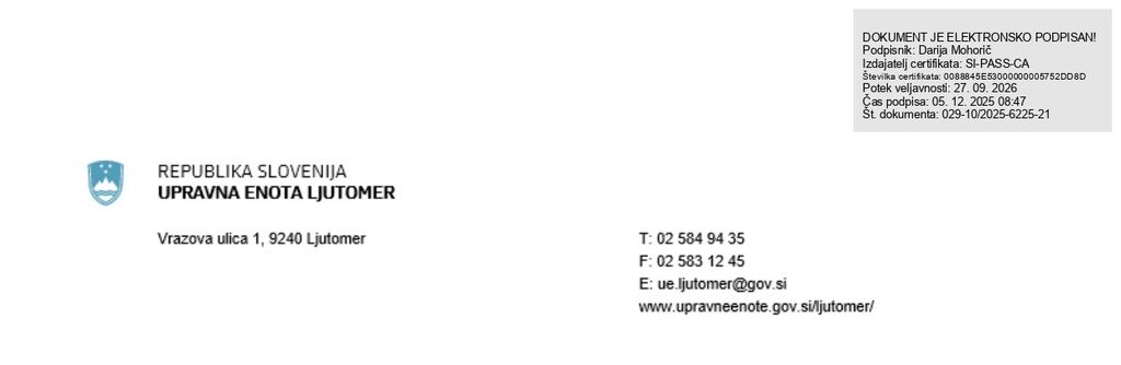 Vljudno prosimo, da nas v nujnih primerih pokličete na telefonsko številko 02 584 94 26 ali pišete na e-mail: ue.ljutomer@gov.si