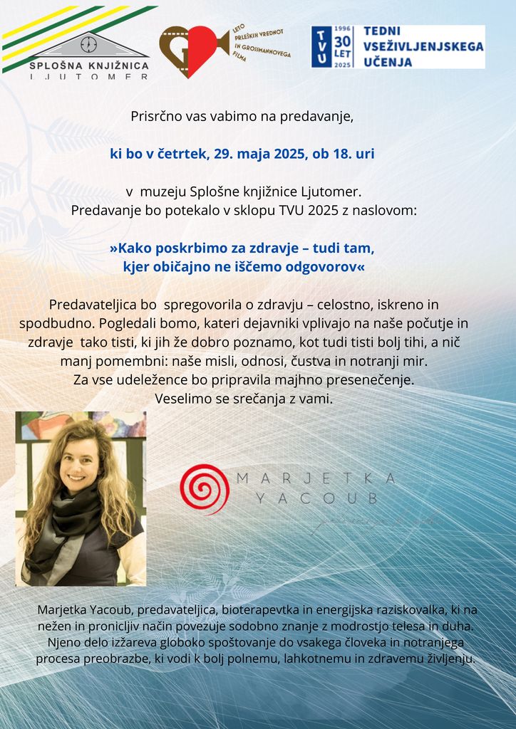 Predavanje »Kako poskrbimo za zdravje – tudi tam, kjer običajno ne iščemo odgovorov«