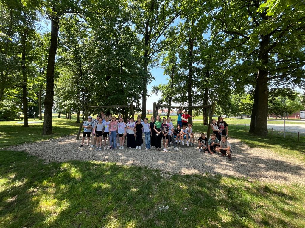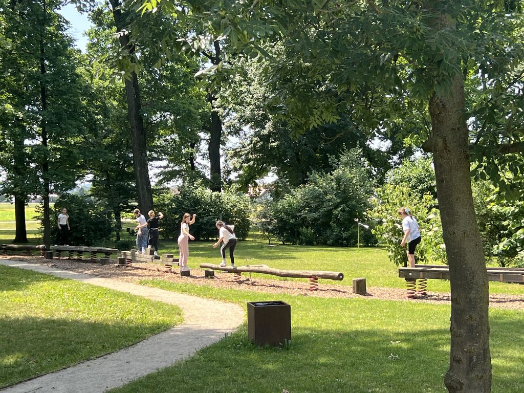 Družili so se tudi na sprehodu do bližnjega Parka doživetij, kjer so učenci skupaj premagovali motorične izzive. Pri tem so se med seboj spodbujali in stkali številna nova prijateljstva.
