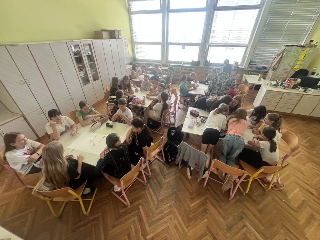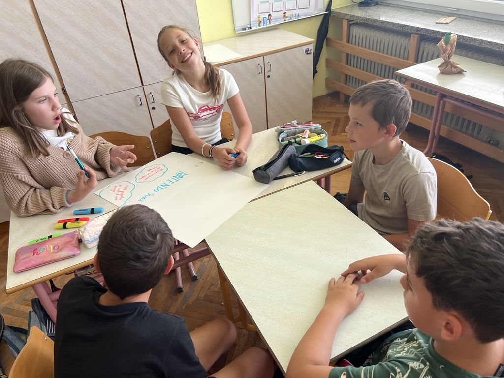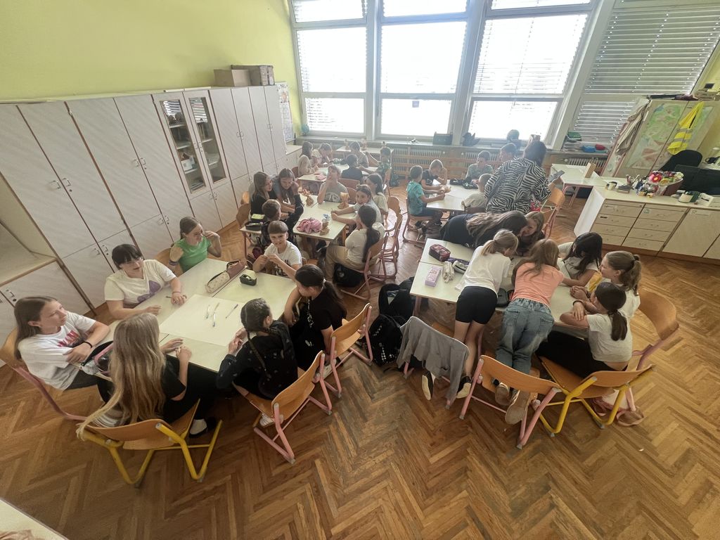 Gostujoči učenci so se po uvodnem sprejemu pridružili učencem 5. razreda Osnovne šole Križevci pri uri gospodinjstva. Pod mentorstvom obeh razredničark so učenci v mešanih skupinah ustvarjali dvojezične oglasne plakate za različne izdelke. Delo je potekalo v sproščenem in sodelovalnem duhu, kar je omogočilo spontano uporabo tako slovenskega kot hrvaškega jezika, ponekod tudi angleščine.