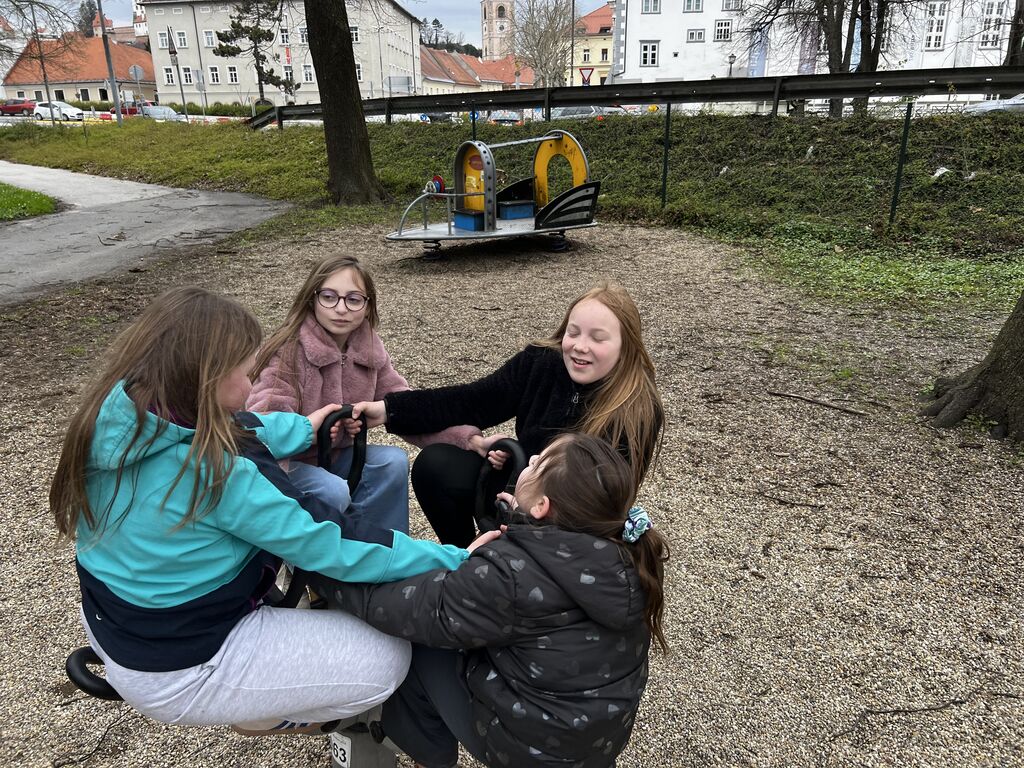 Pomemben del dneva je bilo tudi gibanje in sprostitev v naravi. V mestnem parku so učenci izvajali športno-gibalne aktivnosti, kar je dodatno prispevalo k dobremu počutju in povezanosti skupine.