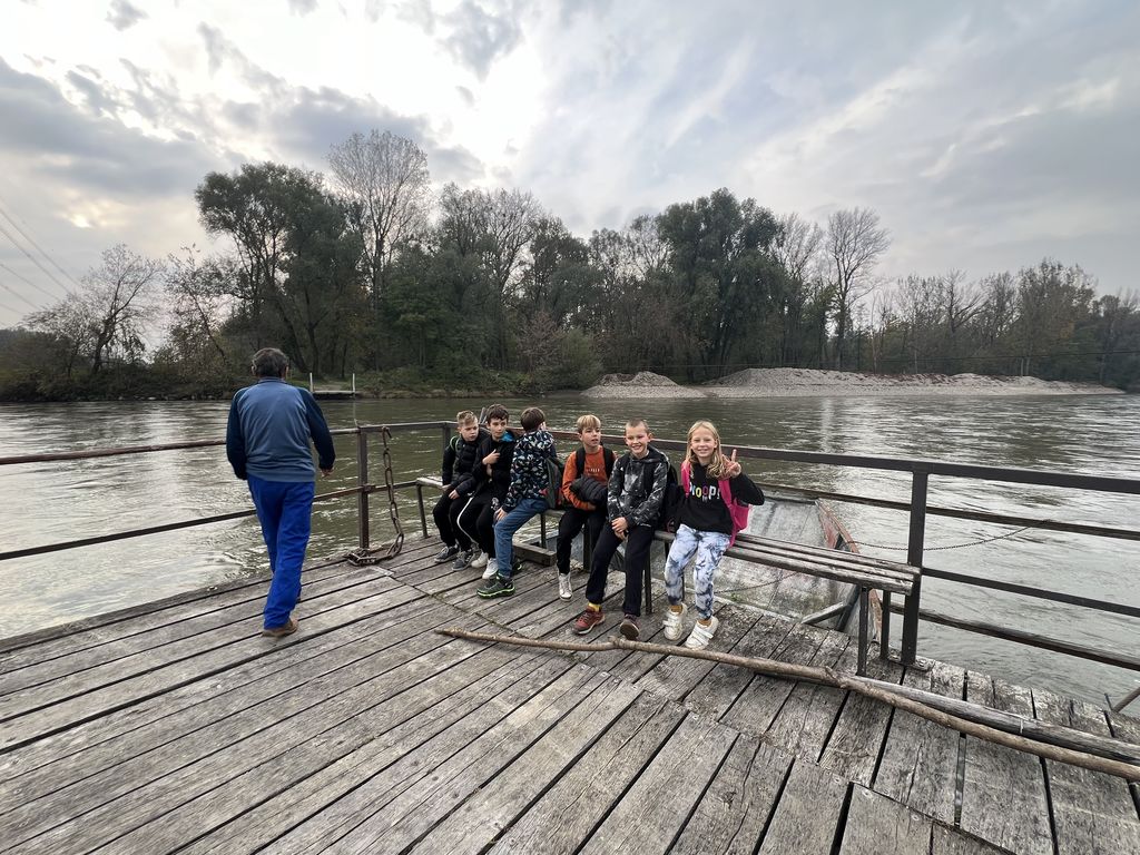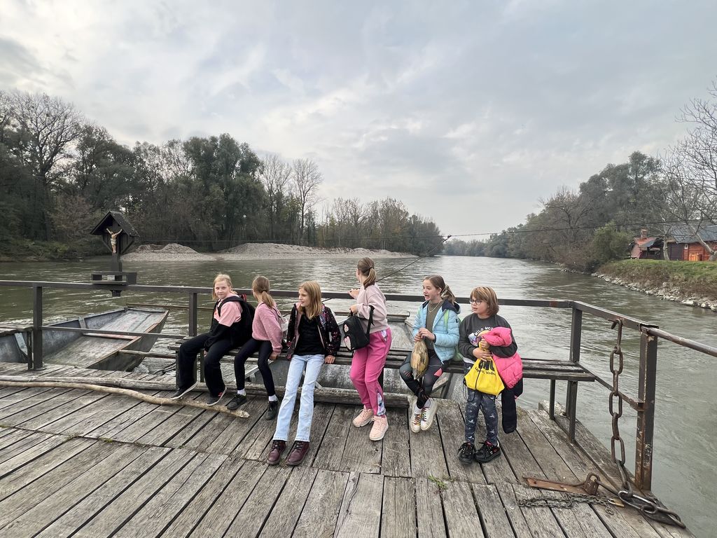 Svojo pot smo nadaljevali proti Melincem, kjer smo si ogledali stalno razstavo Ciglarstvo na Melincih. Po ogledu so se učenci sprostili na igralih, ki so jih gostoljubno ponudili v tamkajšnji gostilni. Sledila je vožnja z brodom na prleško stran reke Mure, pri čemer je brodar poskrbel za varno in prijetno izkušnjo prečkanja reke. Naslednja postaja je bila vas Mota, kjer smo si ogledali Gezove jame, natančneje jamo Golnik, ki se nahaja v neposredni bližini doma Ribiške družine Ljutomer ter gostilne Trnek. Radovedni pogledi učencev so raziskovali skrivnostne jame, pomahali so racam na bližnjem ribniku in se veselo posedli nazaj na avtobus.