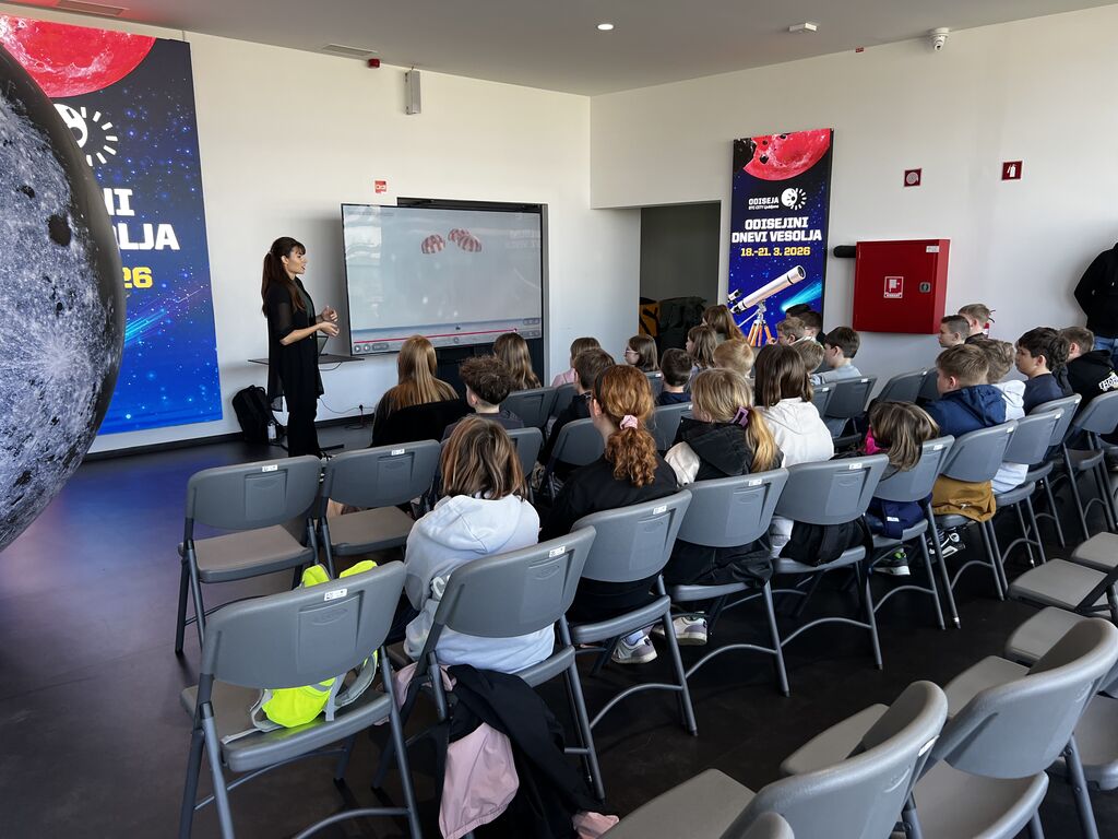 Učenci 5. razredov OŠ Križevci so v četrtek, 19. 3. 2026, preživeli nepozaben in poučen dan na Odisejinih dnevih vesolja. Pri organizaciji in izvedbi so pomembno vlogo odigrali razredniki Nada Vajs Vidnar, Matevž Jakelj ter spremljevalka Anja Makoter.