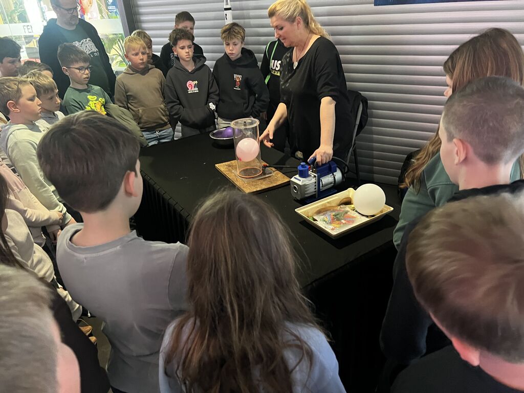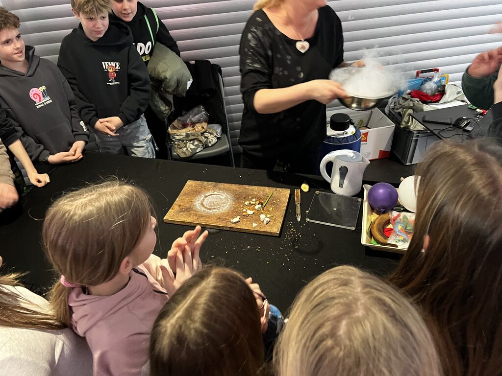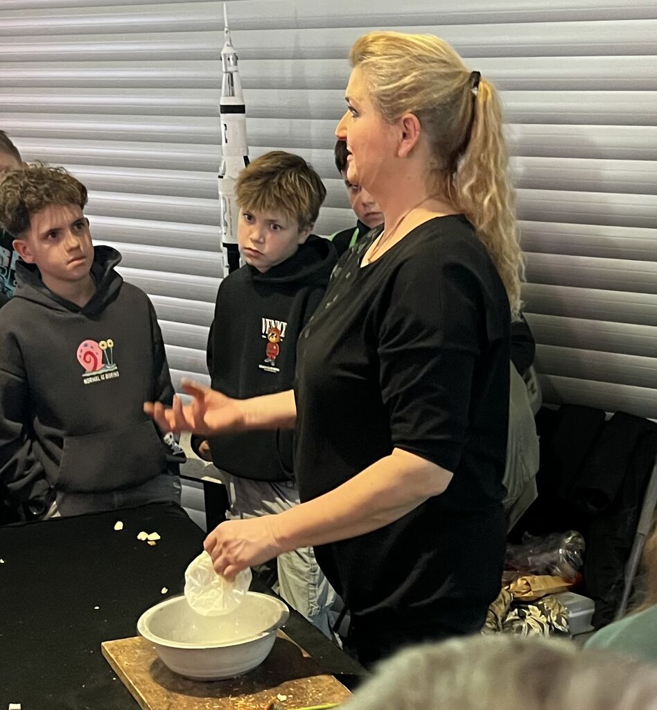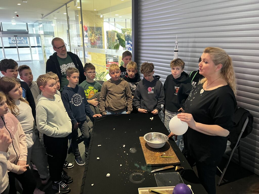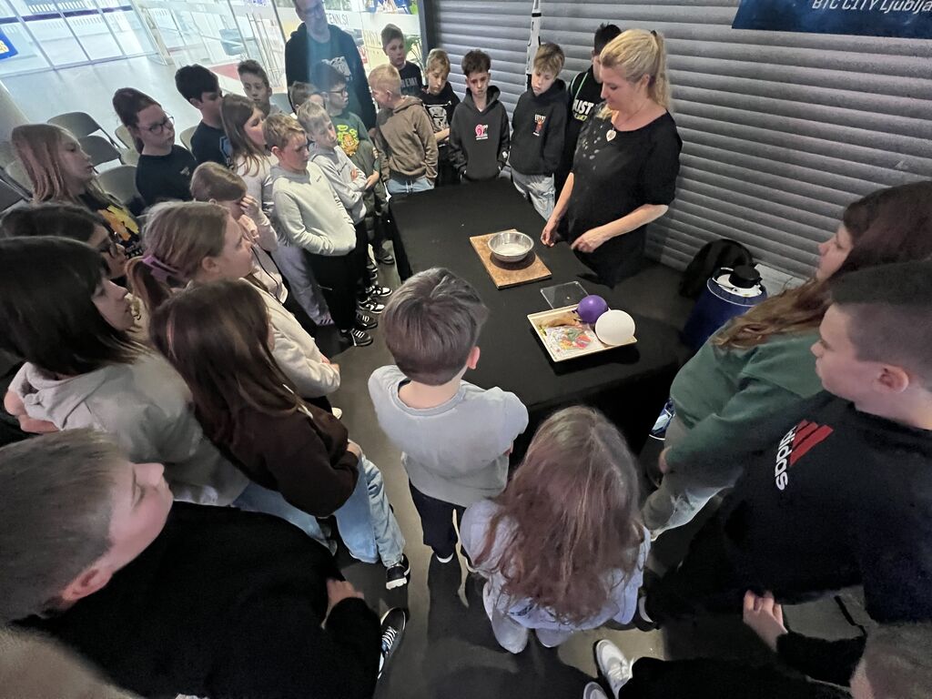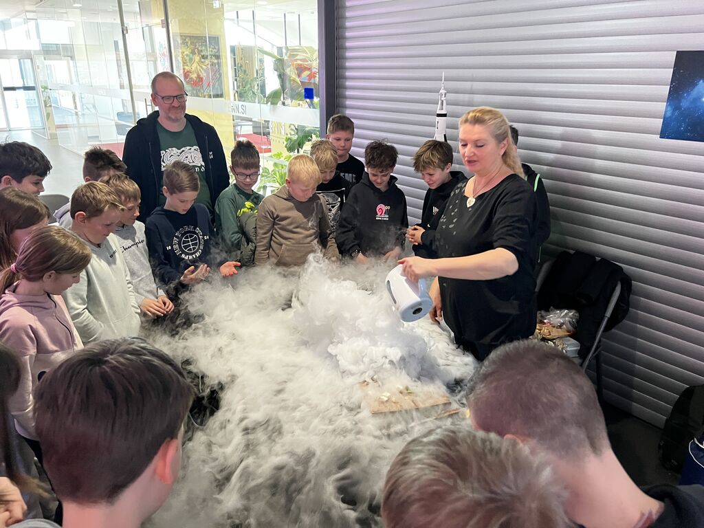 V delavnici SKAFANDER so spoznali opremo astronavtov, največ navdušenja pa je požel prikaz s tekočim dušikom.