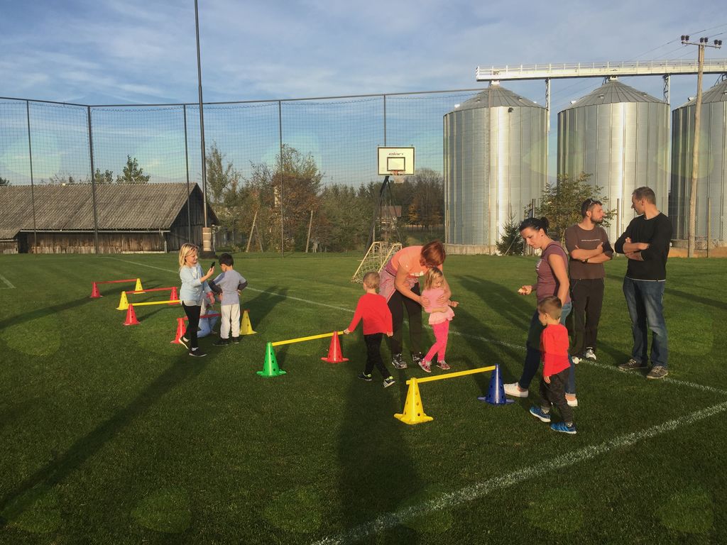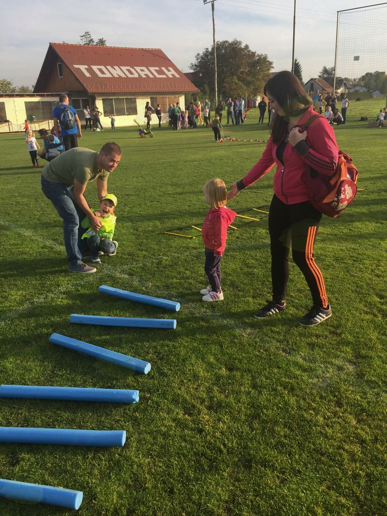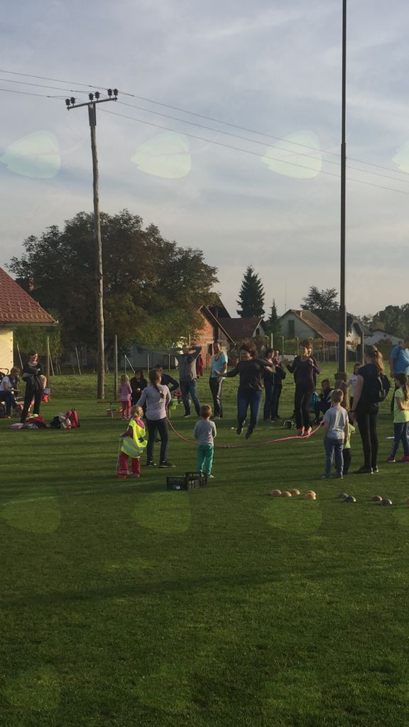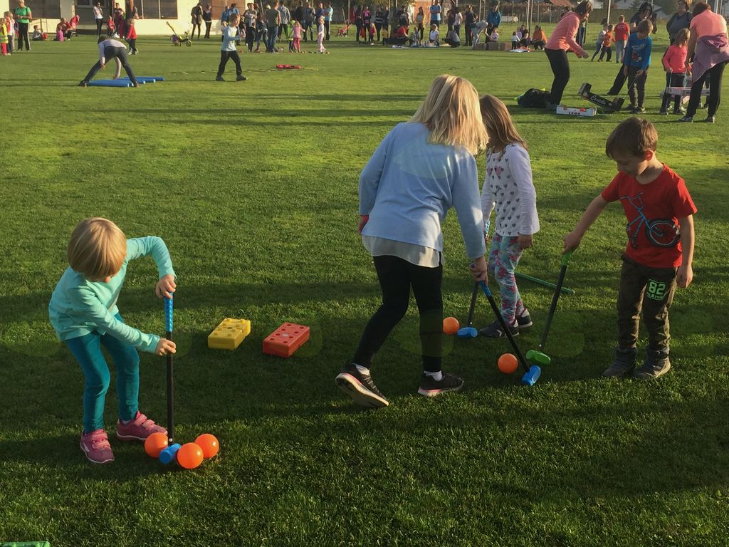 Na igrišču smo se družili ob različnih športnih igrah, ki smo jih za naše otroke in starše pripravile strokovne delavke vrtca v sodelovanju s športnim učiteljem Denisom Hofmanom.