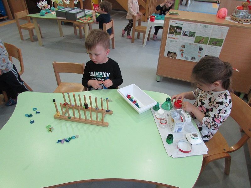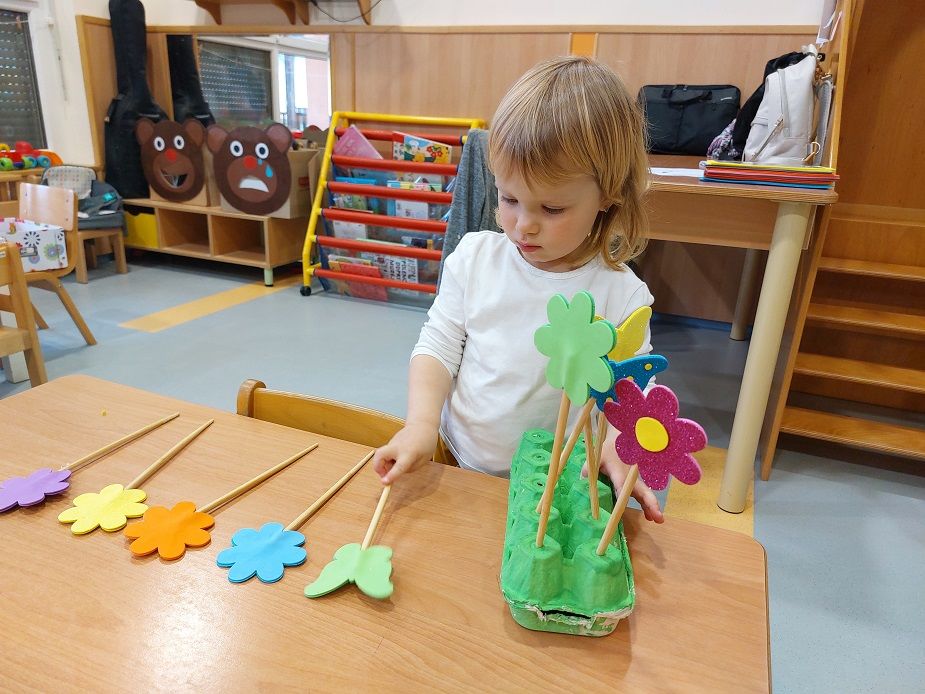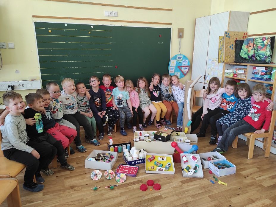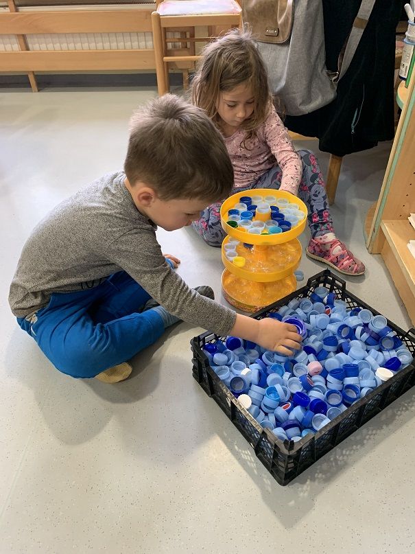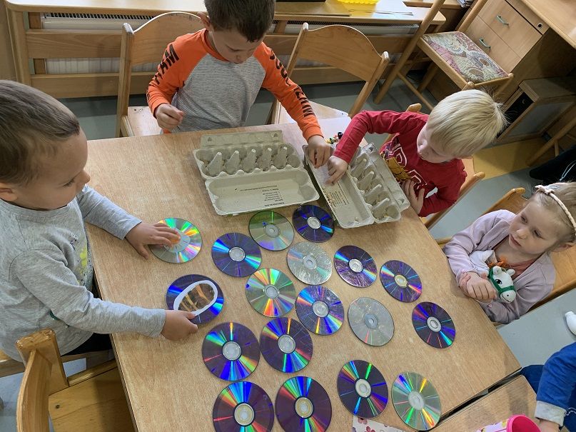 Ob svetovnem dnevu Zemlje smo s pestro izbiro različnih odpadnih materialov v našem vrtcu poskrbeli za spodbudno učno okolje, starše pa spodbudili k temu, da tudi doma sami izdelajo preprosto igračo iz odpadnega materiala.