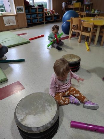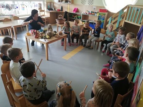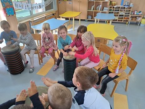 življenje vnašamo veselje in sproščenost ter vplivamo na pospešenost njegovega kognitivnega in telesnega razvoja zato smo se strokovne delavke odločile, da bomo v petek, 30. 9. 2022 v našem vrtcu v vseh oddelkih obeležile SVETOVNI DAN GLASBE.