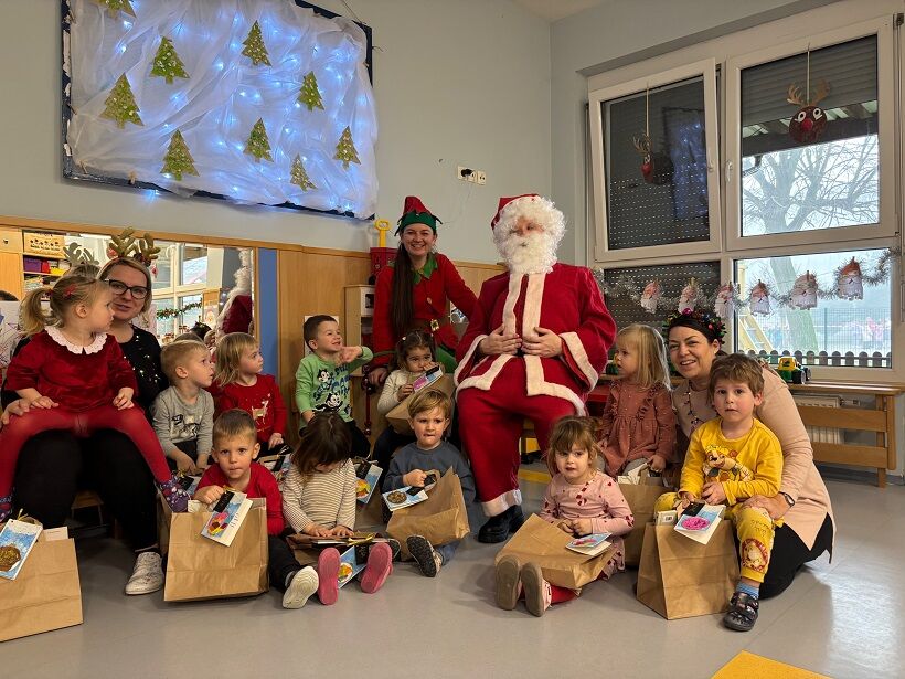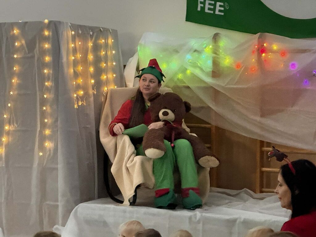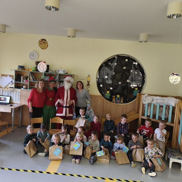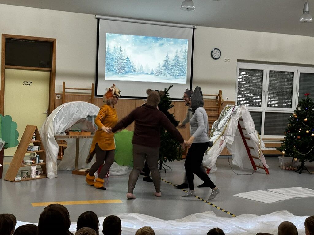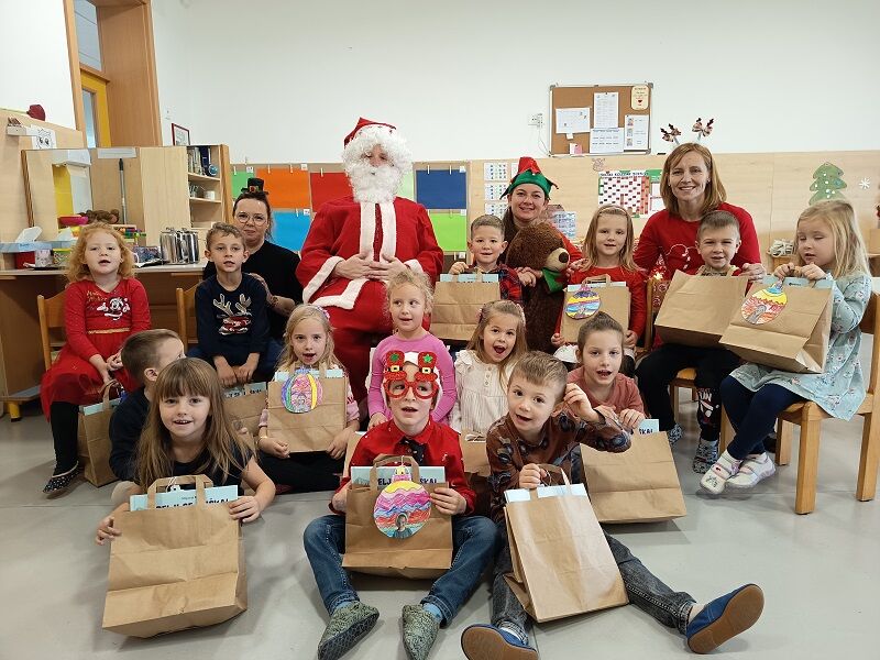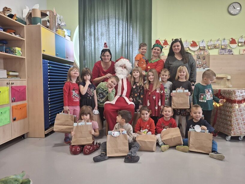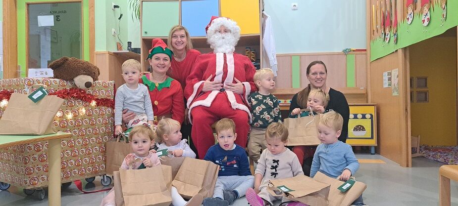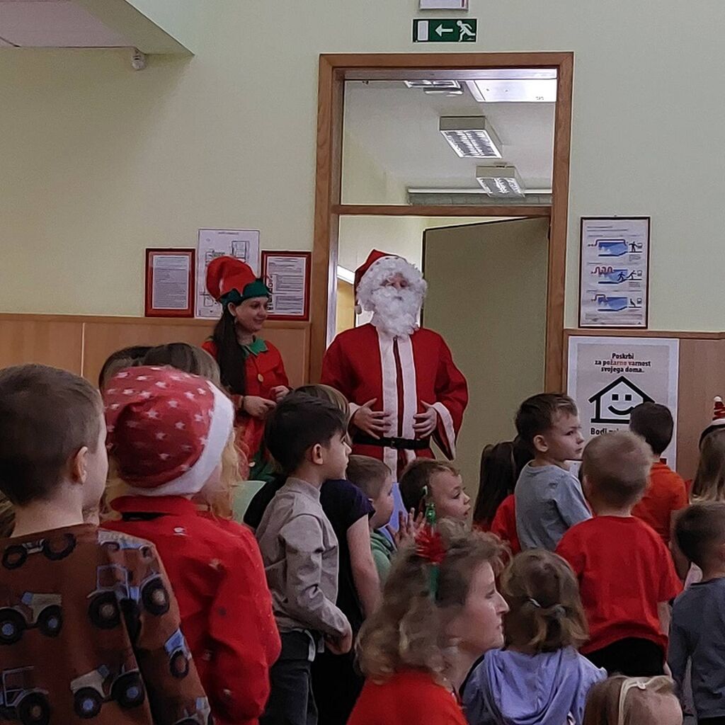 Otroci so se vživeli v zgodbo in spoznavali, kako pomembno je, da drug drugemu pomagamo. Veseli smo, da je te vrednote pri naših otrocih prepoznal tudi božiček, ki nas je s svojim obiskom prijetno presenetil. Za njegov obisk se mu iskreno zahvaljujemo, saj je otrokom pričaral nepozabno praznično doživetje.
