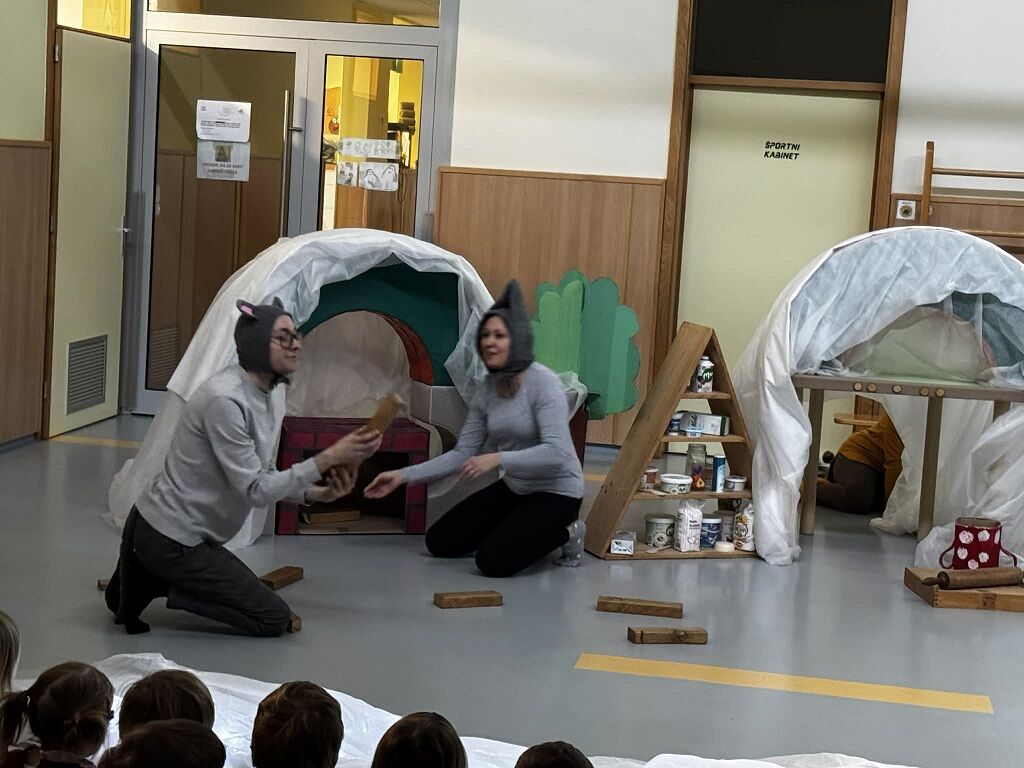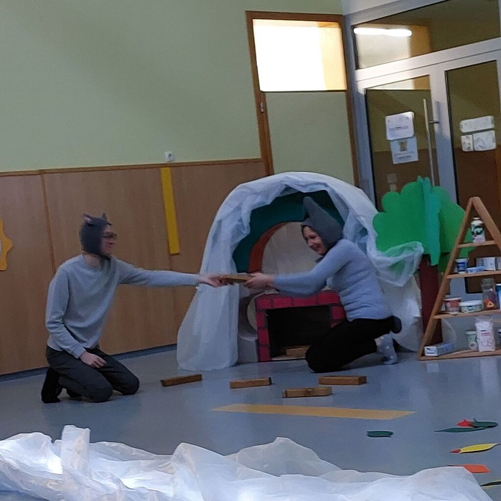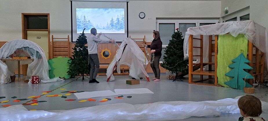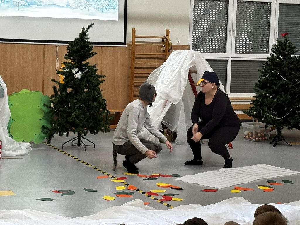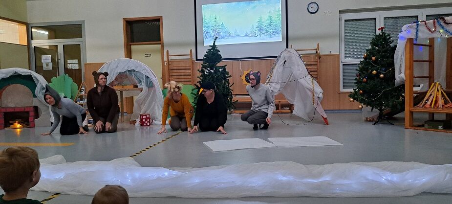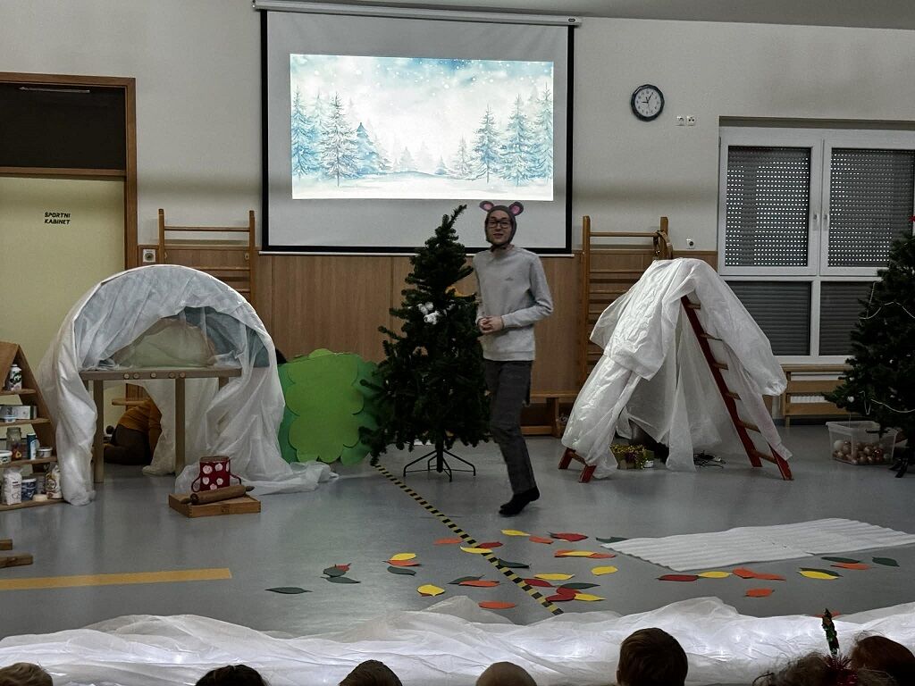 V Vrtcu Križevci so strokovni delavci (Katja Mertuk - medved, Brigita Cmager – zajček, Tadeja Virag – lisica, Nina Osvald – ptička, Matej Štebih – miška, Barbara Marinič – glasba, Monika Jakhel - pripovedovalec) za otroke pripravili prisrčno dramatizacijo Iščemo hiško za božično miško.