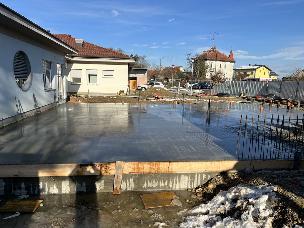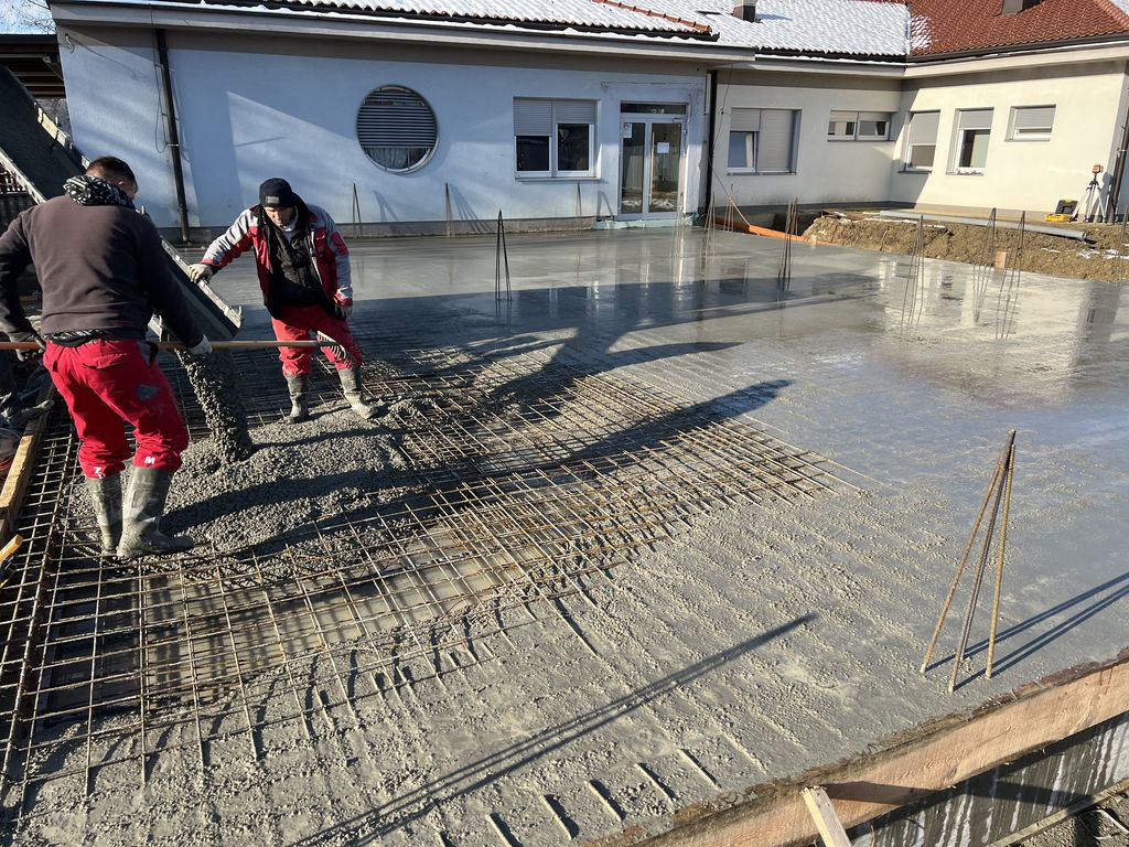 Izvajalec je izvedel betonažo temeljne plošče pri prizidku vrtca Križevci.