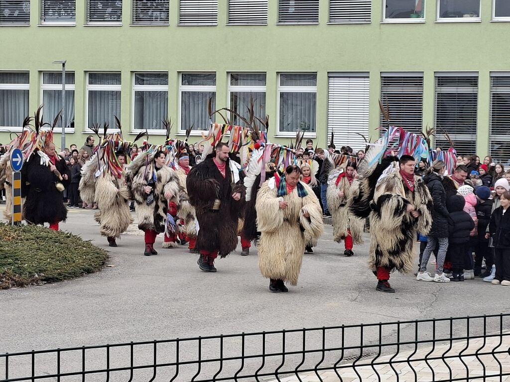 Našo šolo in vrtec so obiskali kurenti in s svojim prihodom pričarali pravo pustno vzdušje. Pred šolo so se predstavili vsem učencem in otrokom vrtca ter z glasnim zvonjenjem in značilnim plesom preganjali zimo ter klicali pomlad. Njihovi barviti trakovi, kožuhi, zvonci in mogočne maske so pri vseh prisotnih vzbudili veliko radovednosti in občudovanja.