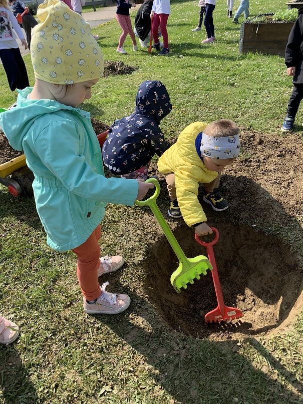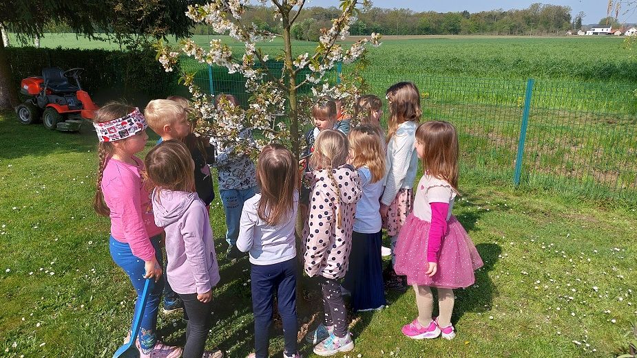 Pridno pa skrbimo tudi za naš majhen sadovnjak, kateri nam služi  kot zunanja učilnica. Z opazovanjem sadnih dreves spoznavamo letne čase in spremembe v naravi.