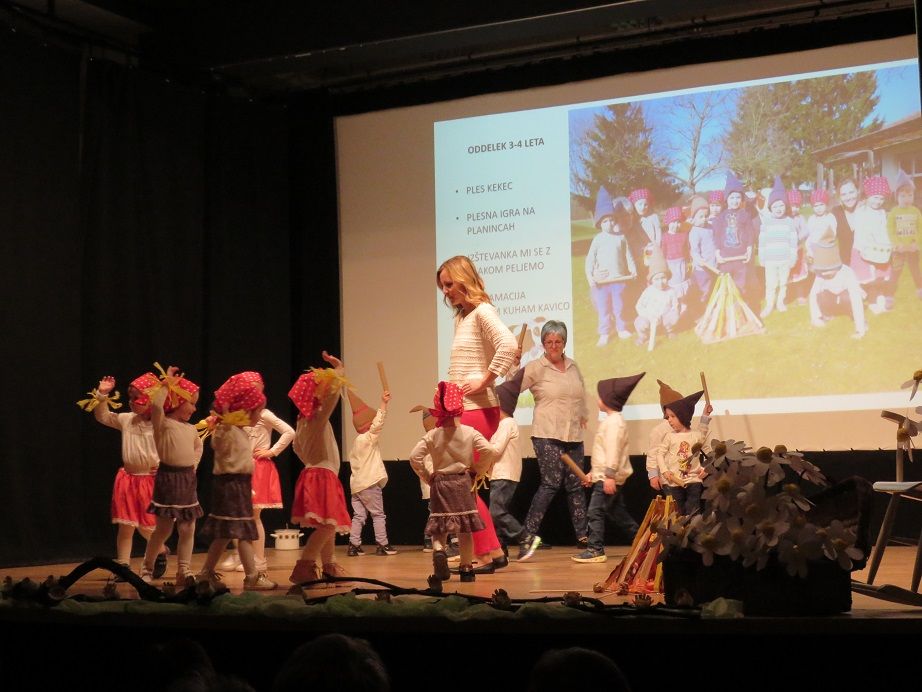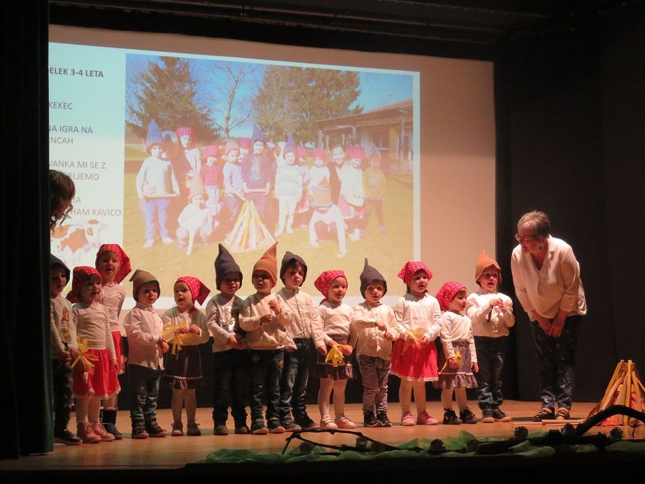 V uvodu smo obiskovalcem predstavili našo vrtčevsko himno Luštno v vrtec je hoditi in pesem Ivajnšica. Avtor obeh je izreden prleški pesnik Marko Kočar, ki je napisal številne pesmi, ki jih danes izvajajo številni posamezniki in ansambli. Leta 2019 nas je razveselil z obiskom našega vrtca in nam predstavil njegovo poezijo. Letos smo v tednu kulture pobližje spoznali njegovo pesem Ivajnšica ter skupaj odkrivali neznane prleške besede, ki jih naši otroci več ne poznajo ter se igrali igre, ki so del kulturne dediščine, oziroma ena izmed najstarejših plasti ljudskega izročila. Del tega, kar smo spoznavali smo prikazali našim staršem, babicam in dedkom ter jim tako izkazali posebno pozornost, saj otroci nikoli ne moremo poplačati svojim mamam za vso skrb in neizmerno ljubezen, prav pa je, da jim izkazujemo posebno pozornost vsaj ob materinskem dnevu, čeprav bi morali vsak dan praznovati kot njen poseben dan. Babice in dedki pa nam staršem velikokrat pridejo naproti, ko potrebujemo varstvo, zavedamo se, da so pomemben člen pri vzgoji naših otrok.