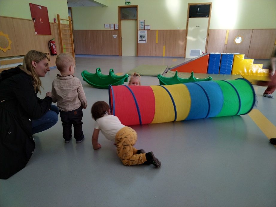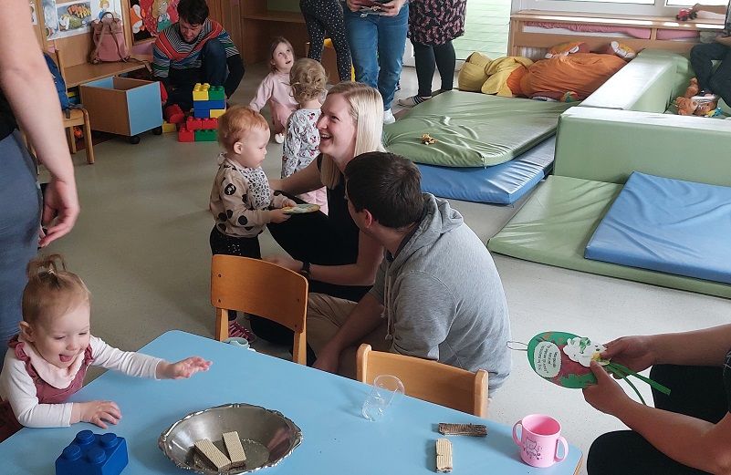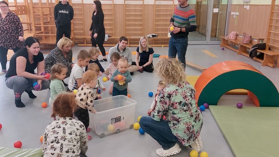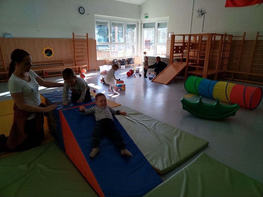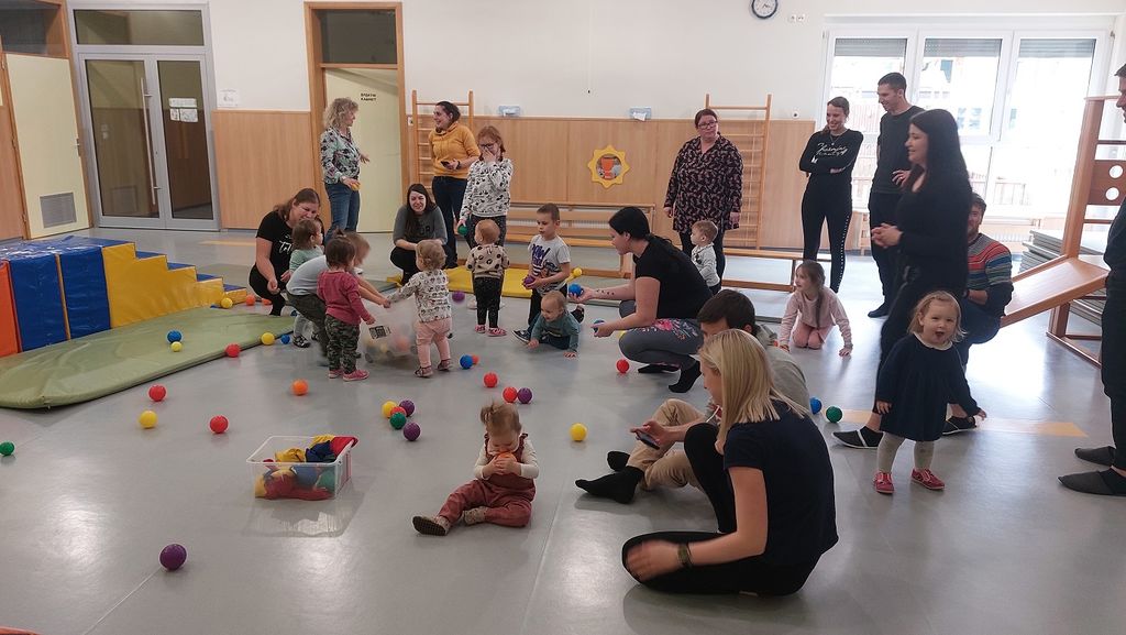 Otroci prvega starostnega obdobja in strokovne delavke, pa so se s starši družili ob različnih gibalnih igrah v vrtcu ali prostorih OŠ Križevci.