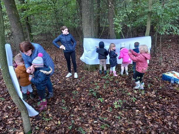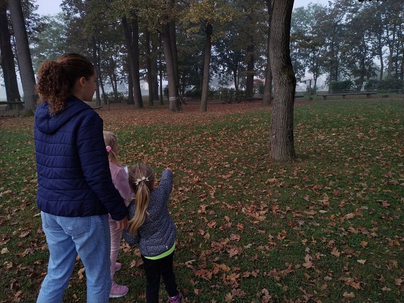 V dveh oddelkih so se dijaki lahko seznanili z raziskovalnim delom v vrtcu, saj so se dejavnosti izvajale zunaj vrtca, in sicer v gozdu in doživljajskem parku Križevci. Dijaki so tako imeli priložnost zaznati načela gozdne pedagogike, saj je vrtec Križevci drugo leto vključen v projekt GOZDNI VRTEC. V naravnem okolju, so otroci predvsem raziskovali in bili aktivni udeleženci v vzgojno-izobraževalnem procesu, kjer so bili motivirani, si medsebojno pomagali in se učili drug od drugega, predvsem pa se gibali, družili in zabavali na svežem zraku.