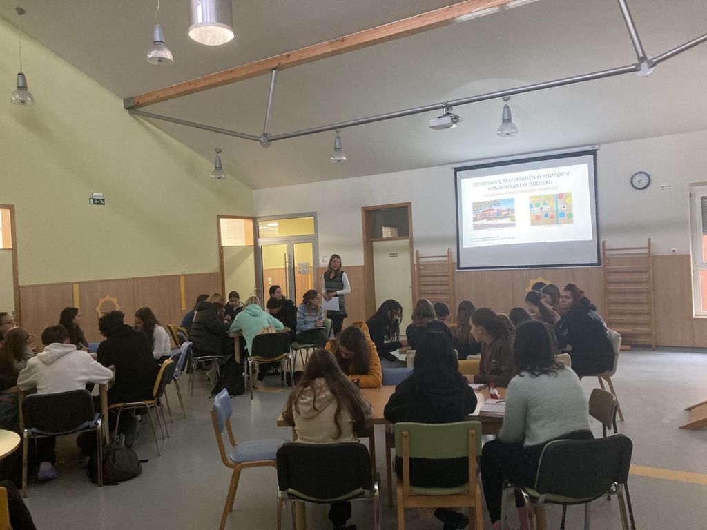 Zjutraj jih sprejela in pozdravila ravnateljica OŠ Križevci Vasilija Stolnik, sledila je predstavitev primera dobre prakse iz kombiniranega oddelka s strani pedagoške vodje, pomočnice ravnateljice Renate Slavinec Berden. Dijaki so spoznali elemente formativnega spremljanja skozi konkretne primere iz oddelka, kako pedagoško delo poteka po načelu razvojno-pristopa in kako pristopajo k individualnem delu z nadarjenimi otroki.