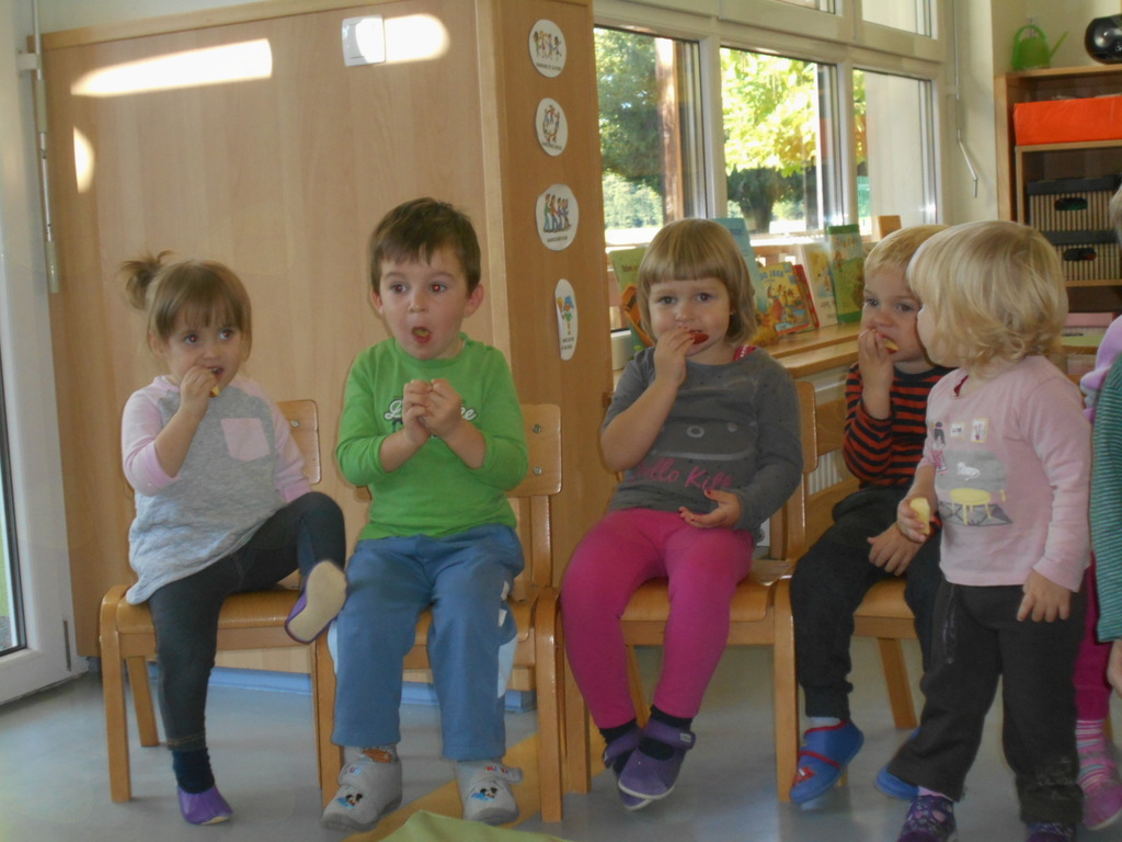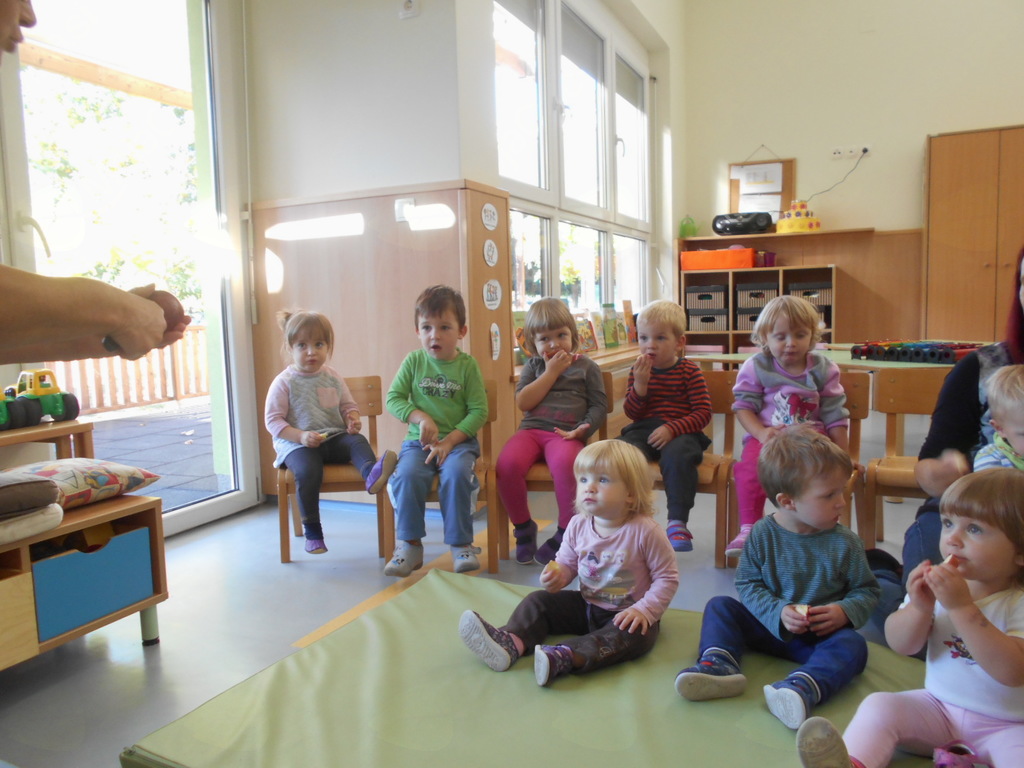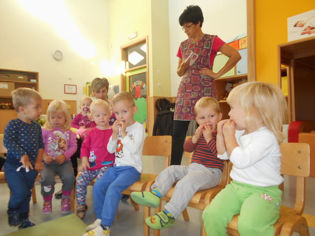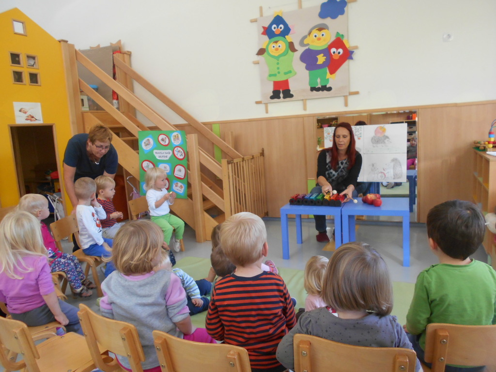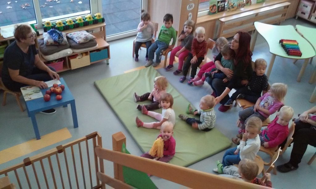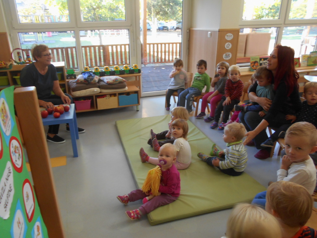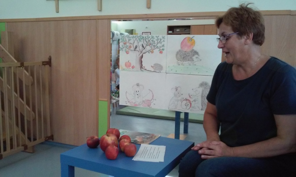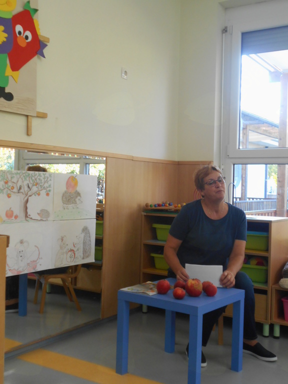 - ob slikovnem prikazu smo poslušali zgodbico Jabolko, peli pesmice ob spremljavi na metalofon