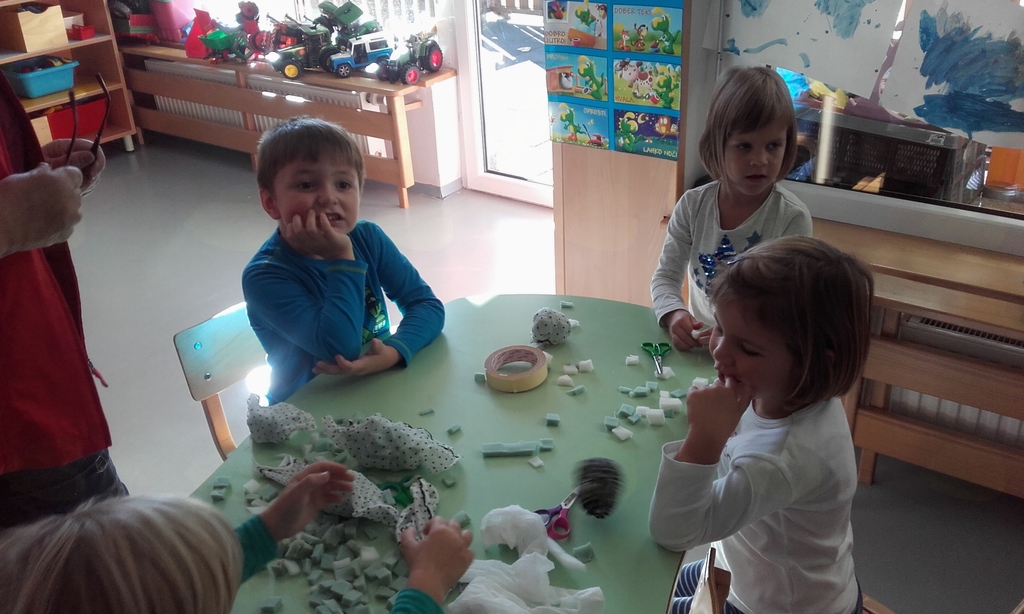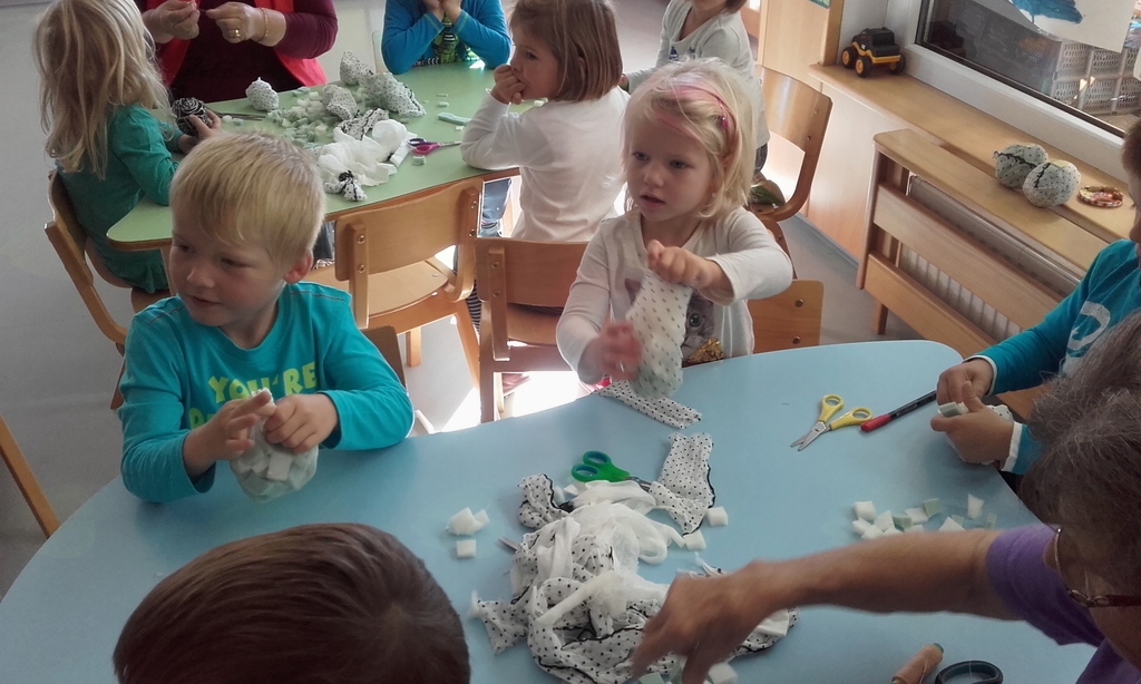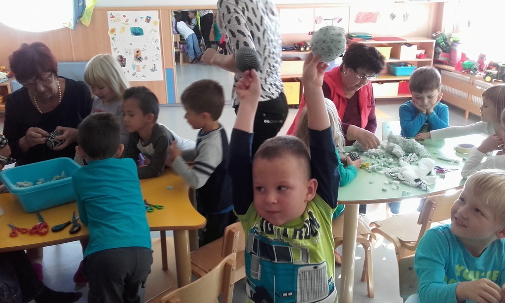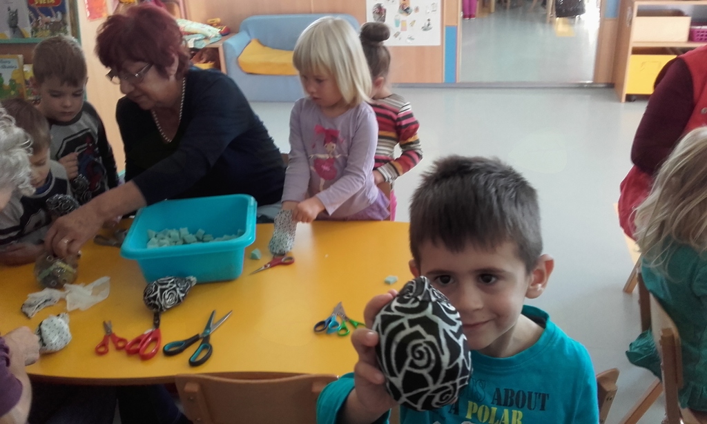 - izdelovali smo žogice iz blaga