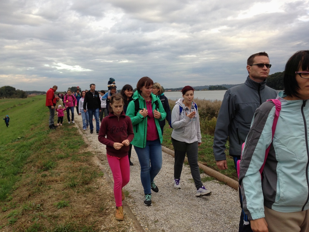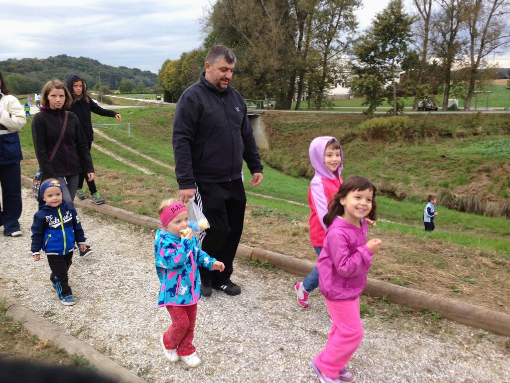 V četrtek pa smo se v popoldanskem času odpravili na kratek pohod ob Gajševskem jezeru, v katerem so sodelovale vse skupine vrtca. Pridružili so se nam starši, stari starši, bratci, sestrice...