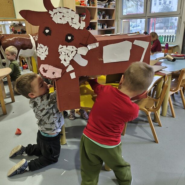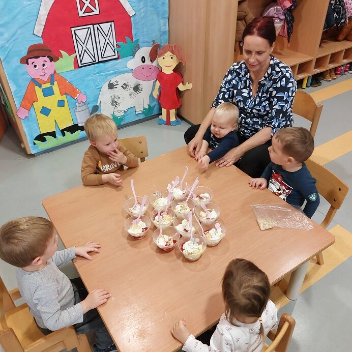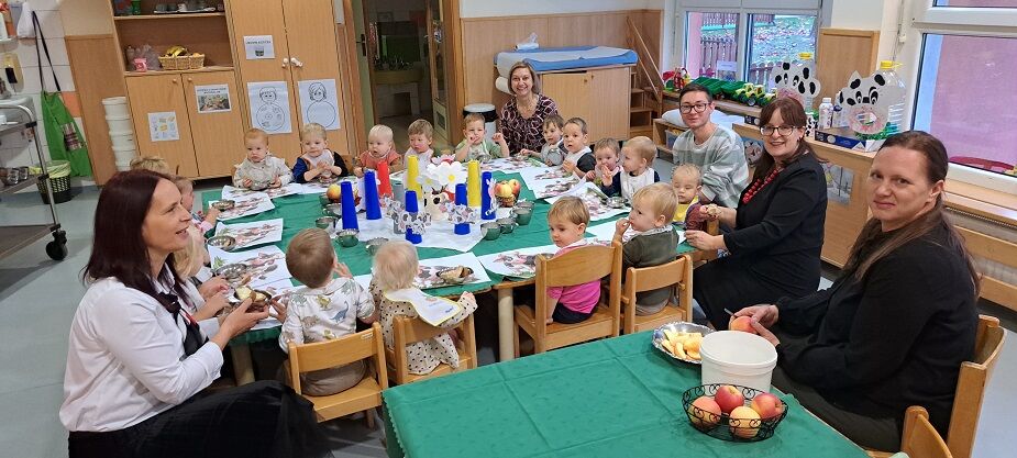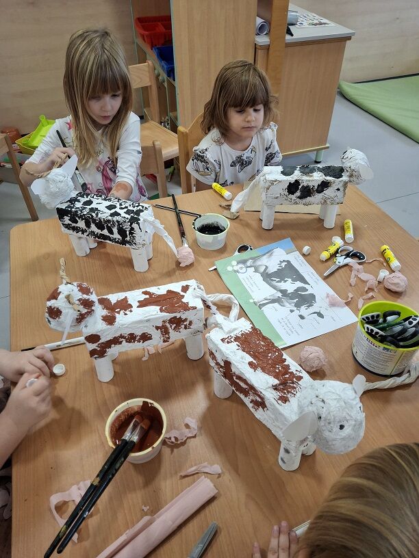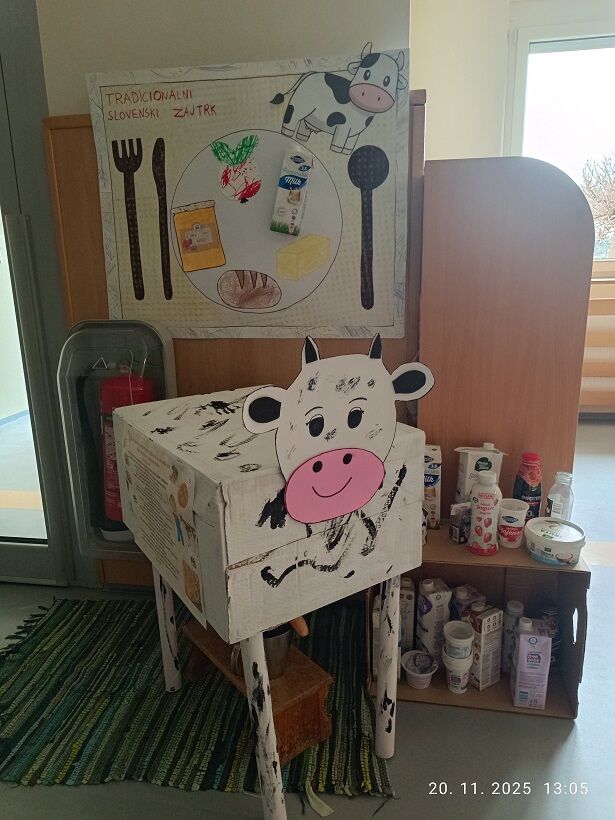 V vrtcu Križevci smo tudi letos obeležili Teden slovenske hrane, ki ga je zaznamovalo raziskovanje lokalnih pridelkov in pomena zdravega zajtrka. Otroci so ves teden spoznavali sestavine Tradicionalnega slovenskega zajtrka – med, maslo, kruh, jabolko in mleko – še posebej pa so se posvetili raziskovanju poti mleka od krave do potrošnika. Ob praktičnih dejavnostih so si pripravljali različne mlečne jedi, razvijali spretnosti pri didaktičnih igrah, ustvarjali v delavnicah ter se učili s pomočjo raziskovalnih aktivnosti.