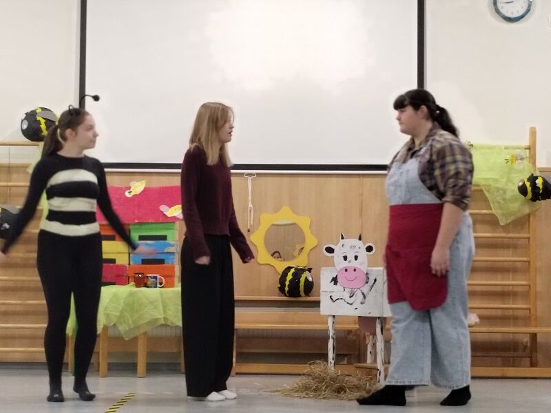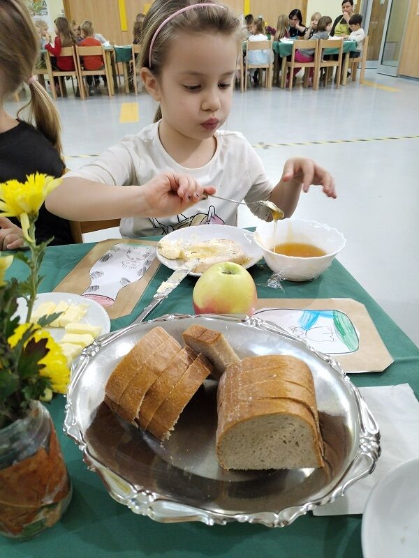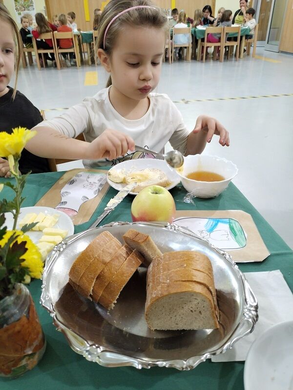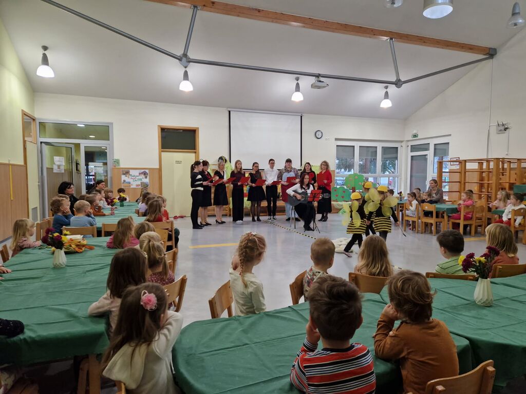 Na dan Tradicionalnega slovenskega zajtrka so strokovni delavci vrtca zapel pesem Leti moja čebelica, dijakinje GFML pa so pripravile prikupno predstavo o deklici Ani, ki je raziskovala sestavine zajtrka in otroke spodbudila k spoštovanju narave ter dela kmetov. Dogodek smo zaključili s skupnim zajtrkom in okusnimi dobrotami lokalnih pridelovalcev.