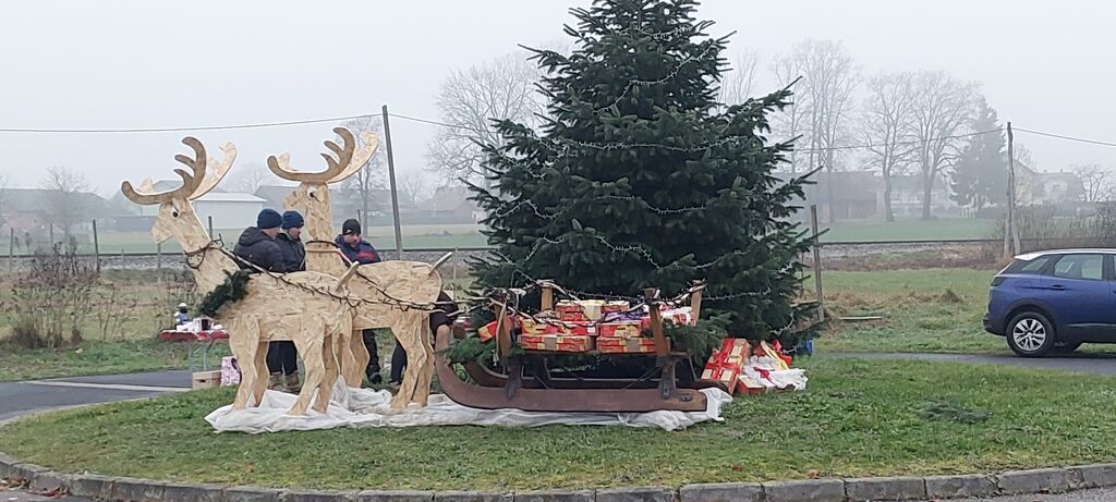 Praznično vzdušje je dopolnila še postavitev dekoracije pred jelko – velika lesena jelena, ki vlečeta sani. Tako je prostor postal prava paša za oči ter priljubljena točka za fotografiranje.