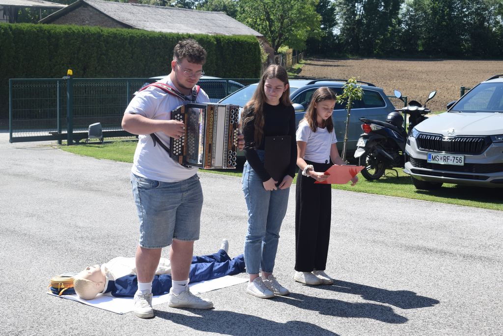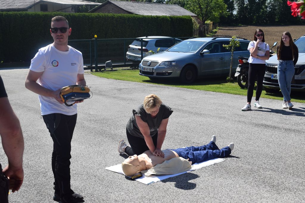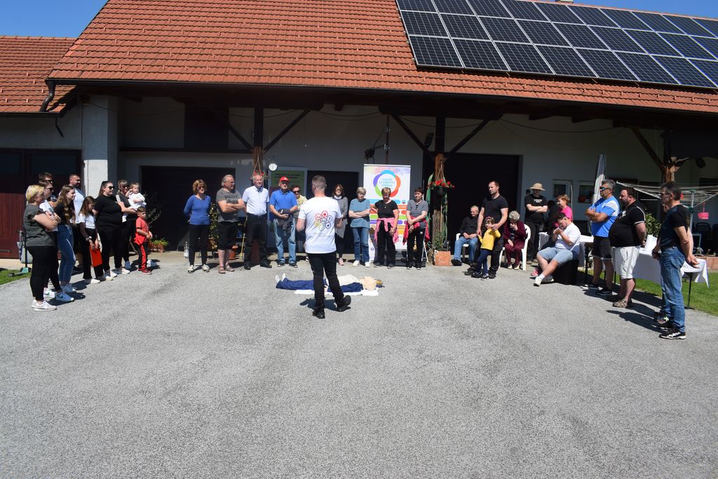 Zaradi vsega naštetega je bila organizirana akcija obnove vedenja o oživljanju in uporabe AED na prostoru pred hišo družine Gartner, kjer je od sedaj tudi izven hiše nameščen aparat, ki pokriva območje treh naselij, dveh PG društev in enote RK. Žal lahko ugotavljam, da večina krajanov smatra, da jim tako znanje ni potrebno ali da že vse vedo, saj je marsikdo opravil vozniški izpit, ki vključuje tudi prvo pomoč. Žalostno je tudi dejstvo, da na območju KS ni nobenega izšolanega in preverjenega prvega posredovalca, kar brezplačno izšola ZD Ljutomer. Ob samem začetku predstavitve je društvo Tempo s trojico svojih članov izvedlo kulturni nastop, ki je bil nagrajen z aplavzom prisotnih. Zelo nazoren prikaz oživljanja sta izvedla predstavnika ZD Ljutomer – Centra za krepitev zdravja in sicer vodja centra Alen Sever, dipl.zd. s specialnimi znanji in Nina Trstenjak, dipl.m.s. Ob tej priliki so bile izvedene tudi meritve stopnje sladkorja v krvi in krvnega tlaka. Zanimanje prisotnih je bilo tudi za te meritve veliko in praktično vsi so opravili vsaj eno od meritev. Po prikazu, vadbi prisotnih in izvedenih meritvah pa se je srečanje nadaljevalo ob hrani in pijači še vse do poznega večera. O oživljanju in uporabi AED bi bilo potrebno več govoriti in ne le za svetovni dan tega, drugače pa se napori posameznikov ignorirajo na vseh nivojih.