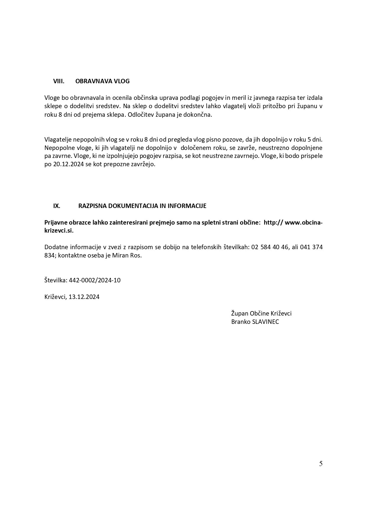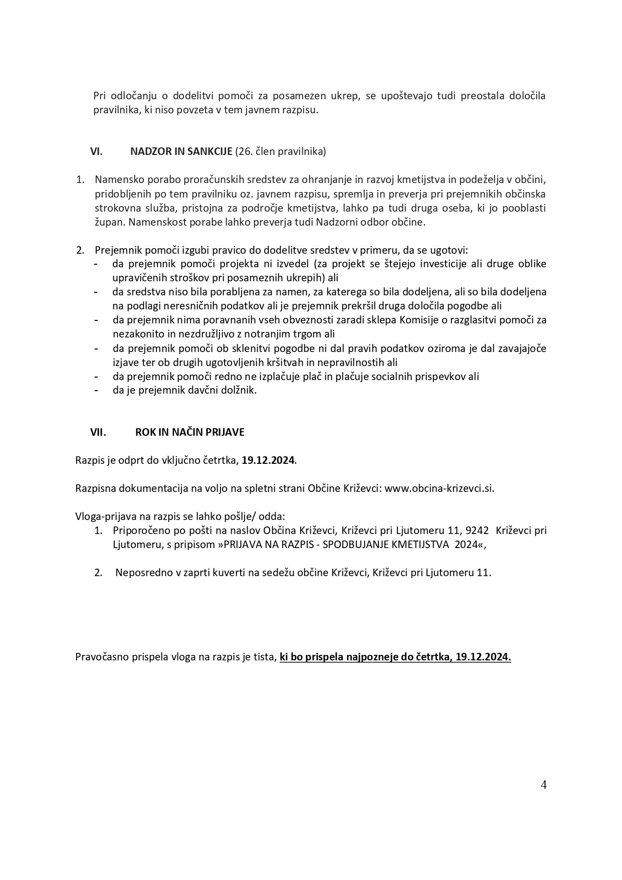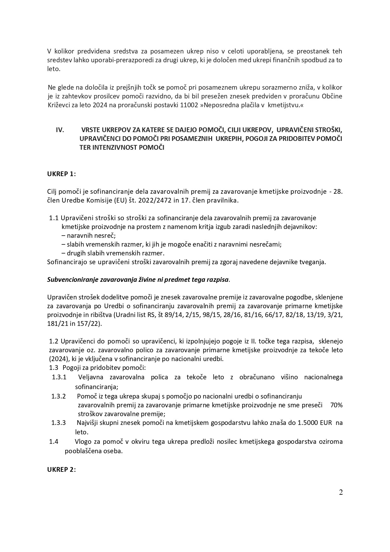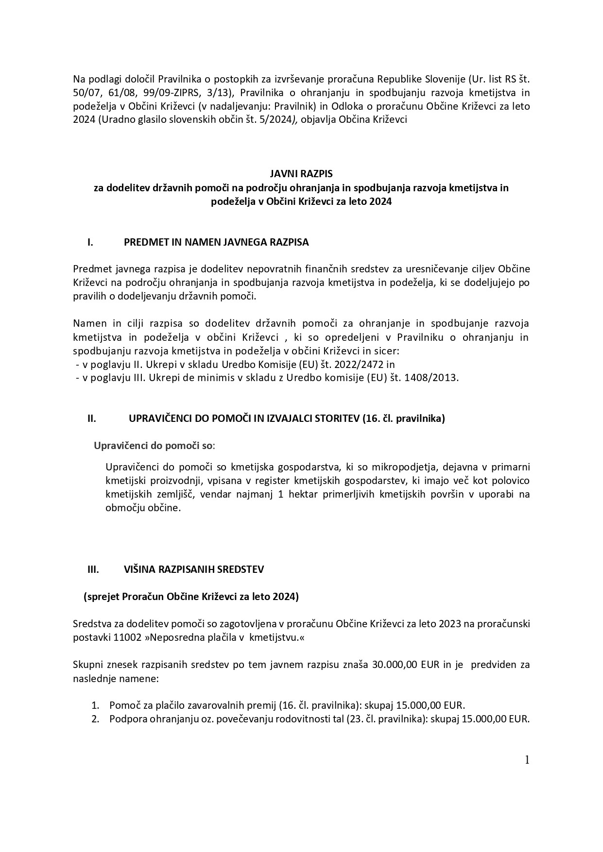 JAVNI RAZPIS za dodelitev državnih pomoči na področju ohranjanja in spodbujanja razvoja kmetijstva in podeželja v Občini Križevci za leto 2024