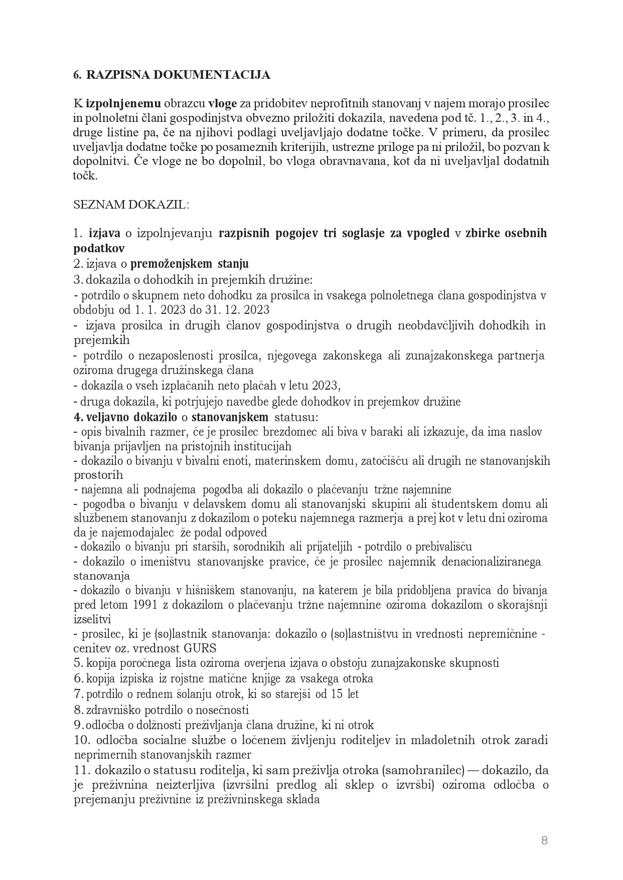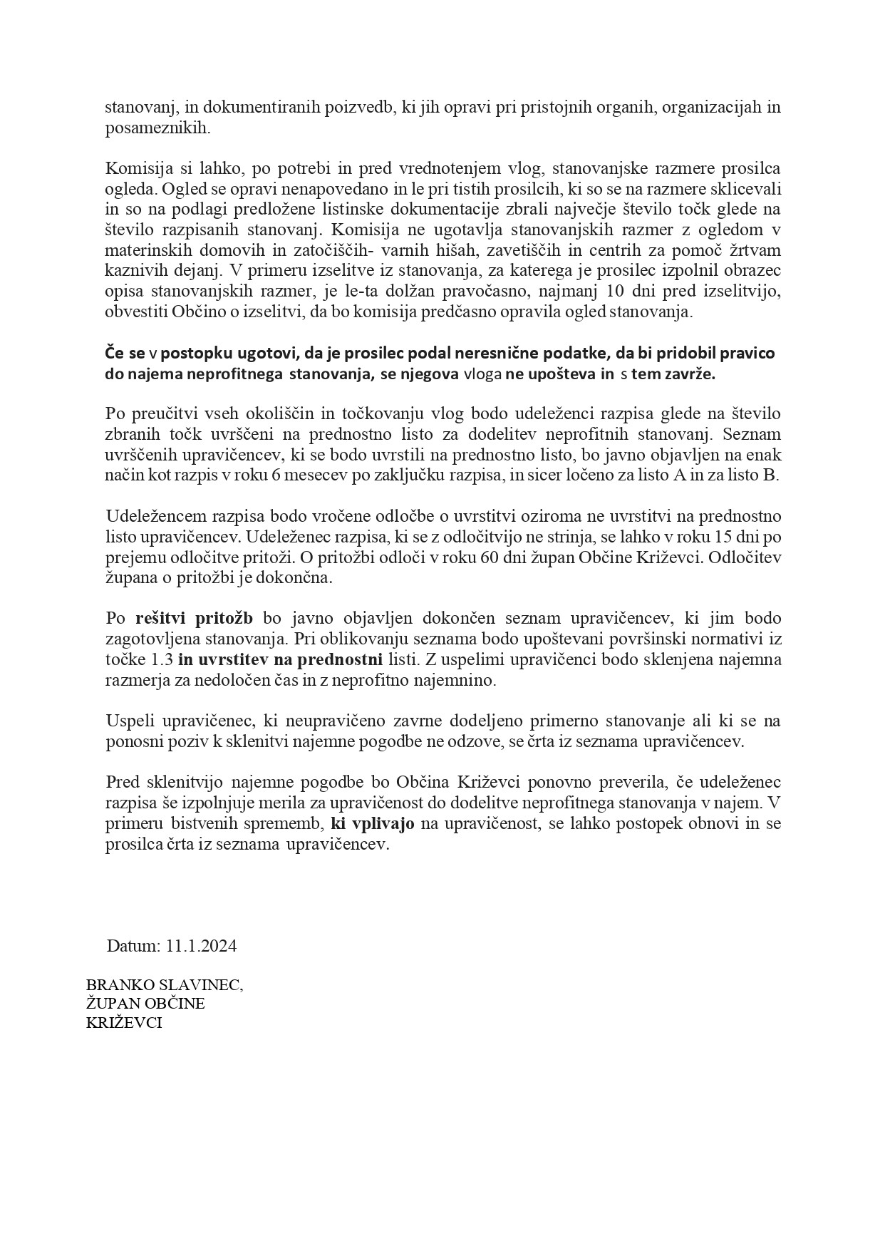 JAVNI RAZPIS ZA DODELITEV NEPROFITNEGA STANOVANJA V NAJEM