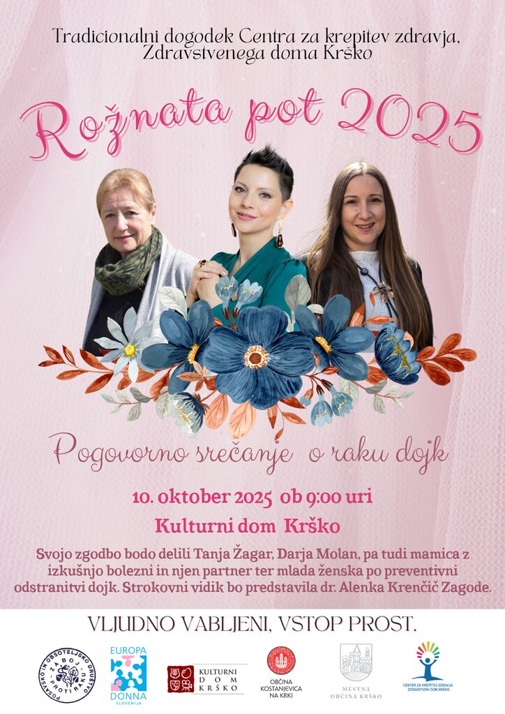 Center za krepitev zdravja Krško vljudno vabi na tradicionalni dogodek Rožnata pot 2025, ki bo potekal v petek, 10. oktobra 2025, s pričetkom ob 9. uri v Kulturnem domu Krško.