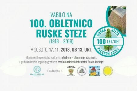 100. OBLETNICA RUSKE STEZE (1918 - 2018) Vabimo vas na slovestnost s kulturno umetniškim programom, ki ga bo zaokrožila bogata pogostitev s tradicionalnimi dobrotami Ruske kuhinje.