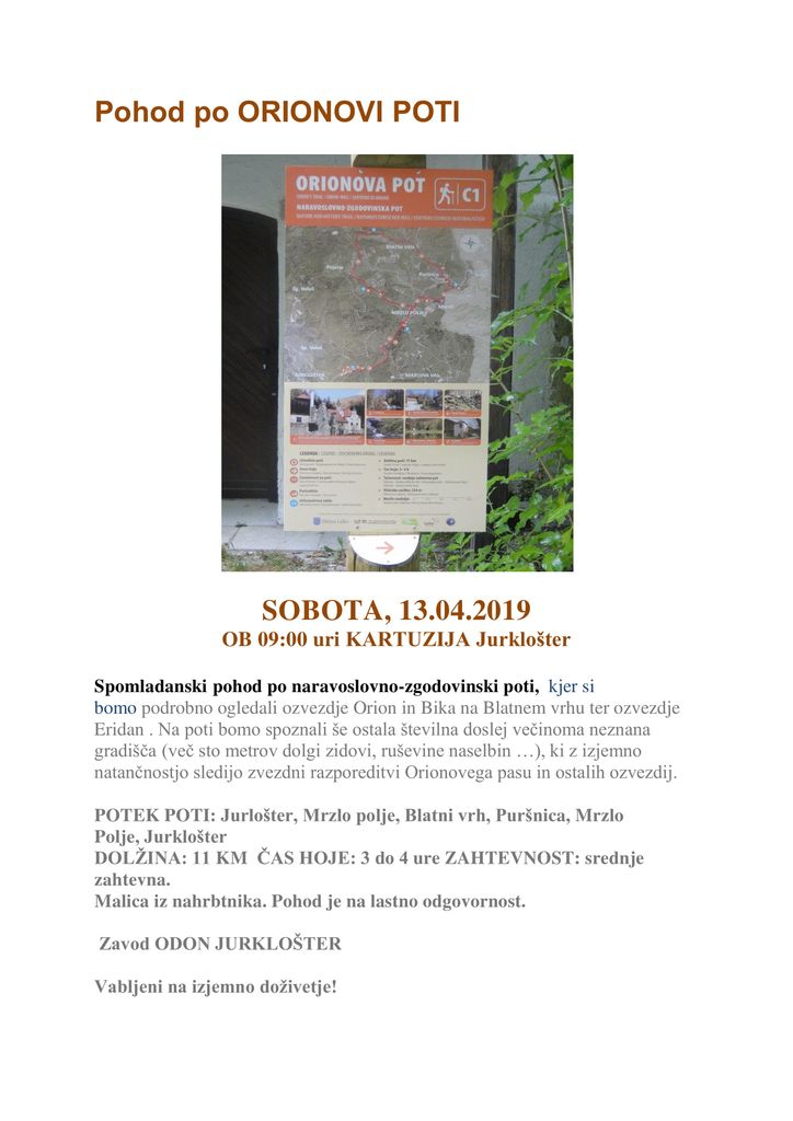 Organizator: Zavod ODON JURKLOŠTER