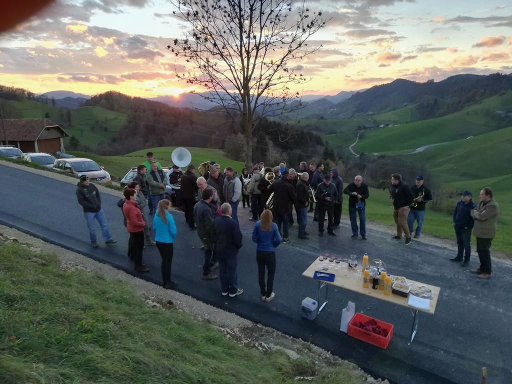 Prvi obnovljeni odsek ceste je bil namenu predan na lokaciji Trobni Dol - Klavžar, drugi pa na lokaciji Šentrupert - Jecl. Župan Franc Zdolšek in predsednik KS Šentrupert Drago Pušnik sta skupaj z najstarejšima krajankama prerezala slavnostni trak in tako namenu predala cesti, ki bosta krajanom omogočali lažji dostop do hiš, predvsem v zimskem času.Prijetno druženje so krajani popestrili s kulturnim programom, ko je zaigrala godba Vrh nad Laškim, zapeli so tudi pevci. Krajanke pa so poskrbele za pogostitev, ki se je nadaljevala v Gasilskem domu Šentrupert.