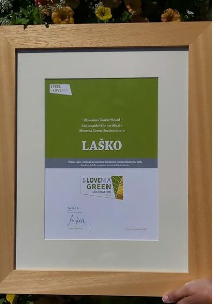 Župan Občine Laško, g. Franc Zdolšek je leta 2015 podpisal zeleno politiko slovenskega turizma in s tem je destinacija Laško vstopila v Zeleno shemo slovenskega turizma, v okviru katere je leta 2016 pridobila znak Slovenia Green Bronze.V letošnjem letu je potekalo ponovno ocenjevanje, v okviru katerega sta Slovenska turistična organizacija in Zavod Tovarna trajnostnega turizma destinaciji Laško podelila znak Slovenia Green Destination Gold, saj je ocenjevalna komisija povzela, da je Laško ena izmed destinacij, katere napredek na področju trajnosti je največji. Do sedaj ima poleg Laškega zlati znak Slovenia Green le sedem destinacij: Ljubljana, Podčetrtek, Bled, Rogaška Slatina, Komen, Miren Kras in Kamnik. Sicer pa je v Zeleno shemo slovenskega turizma vključenih že 48 destinacij, 34 ponudnikov nastanitev, 4 naravni parki in 2 turistični agenciji, ki prisegajo na zeleno strategijo in se ponašajo z znakom Slovenia Green.Postopek obnovitve znaka je v Laškem vodila zelena ekipa, ki sta jo sestavljala dva predstavnika Občine Laško - Luka Picej in Aljaž Krpič, predstavnik Komunale Laško - Marjan Salobir ter trije predstavniki STIK-a Laško – Marina Bezgovšek, Tomaž Majcen in Sabina Seme, ki je bila zelena koordinatorka in usklajevala celoten postopek ocenjevanja. V postopku obnovitve znaka je bilo potrebno zbrati podatke številnih javnih služb, podjetij, javnih zavodov, turističnega gospodarstva in tudi prebivalcev, obiskovalcev ter turistov. Za pridobitev zlatega znaka Slovenia Green Destination morajo destinacije izpolnjevati mednarodno primerljive kriterije Green Destinations Standard, namen takšnega priznanja pa je spodbujanje trajnostnega razvoja turizma v Sloveniji.Z znakom Slovenia Green Destination se na slovenskem, evropskem in globalnem trgu pozicioniramo kot okolju in družbi prijazna destinacija, zato zelena destinacija ni nekaj, kar je projekt, naloga oziroma odgovornost zgolj turistične organizacije. Je nekaj, kar lahko dosežemo samo vsi skupaj – vsi deležniki v destinaciji, tako v javnem, nevladnem kot zasebnem sektorju – in to ne samo v turizmu, temveč na vseh področjih delovanja.