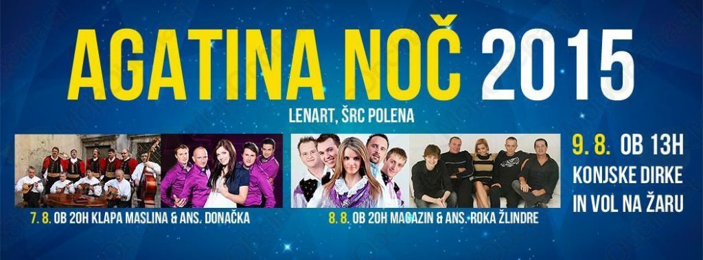 Agatina noč je tradicionalna zabavna prireditev v začetku avgusta, ki se odvija na Športno rekreacijskem centru Polena. Gre za prireditev v spomin na legendo o Agati, ki je bila nesrečno zaljubljena Friderika Herbersteina in je zaradi tega končala na grmadi. Letos bo Agatina noč potekla dva večera, organizatorji pa bodo na oder povabili glasbene ustvarjalce: Klapa Maslina, Ansambel Donačka, Magazin in Ansambel Roka Žlindre.