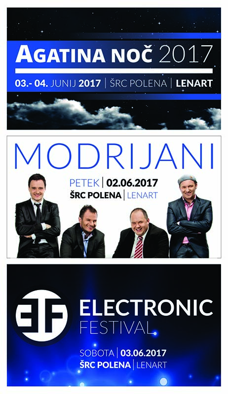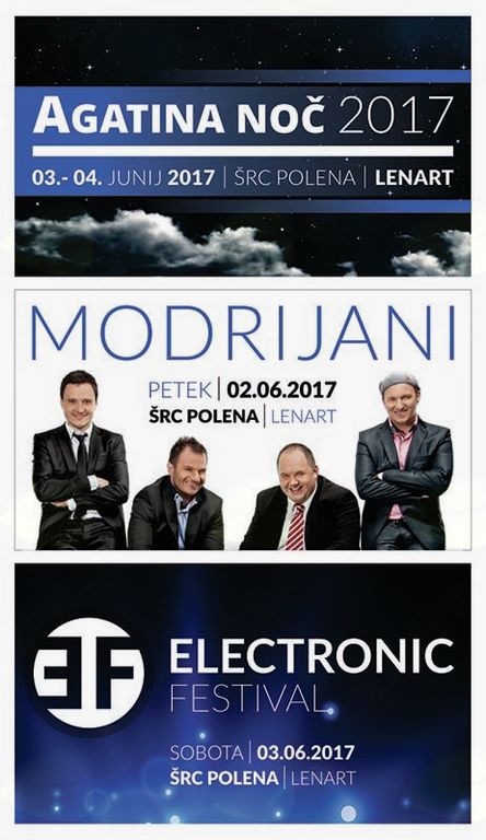 Letos bo tradicionalna Agatina noč (vikend zabave za vse generacije) potekala dva večera na hipodromu ŠRC Polena Lenart v petek, 2.6.2017, in v soboto, 3.6.2017.