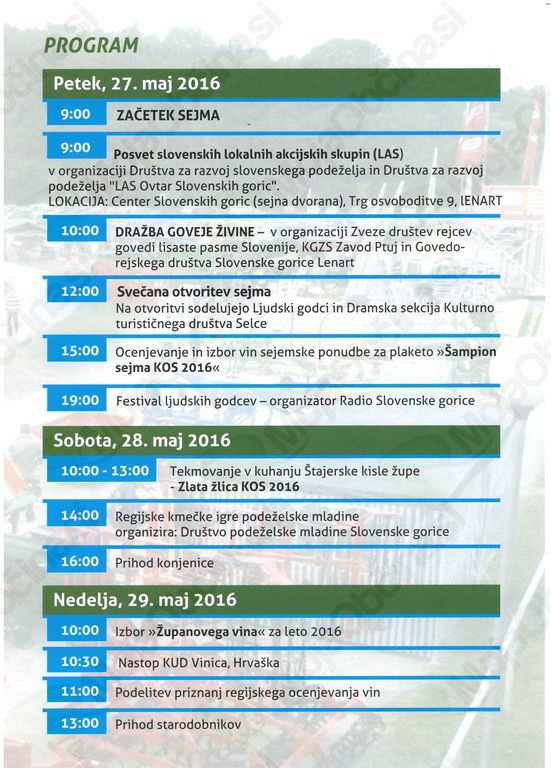 Vabljeni na sejemsko prireditev - 6. KMETIJSKO OBRTNIŠKI SEJEM (KOS) LENART, ki bo potekala od 27. do 29. maja 2016 na hipodromu Polena - Lenart.