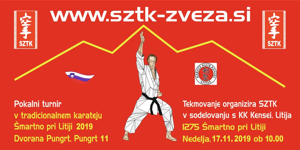 Ob 10. obletnici kluba smo si zadali cilj, da organiziramo POKALNO KARATE TEKMO, NA MEDNARODNI RAVNI, ki bo potekalo 17.11.2019 v športni dvorani Pungrt, v Šmartnem pri Litiji med 10.00 in 17.00 uro. Povabljeni so KLUBI iz KARATE ZVEZE SLOVENIJA in SLOVENSKE ZVEZE TRADICIONALNEGA KARATEJA, prišli pa bodo tudi klubi iz tujine, zaenkrat je potrjen prihod iz Bosne in Hercegovine in Italije. Tako lahko na tekmi pričakujemo čez 350 karate nastopov. Nastopili pa bodo tudi karateisti s posebnimi potrebami.