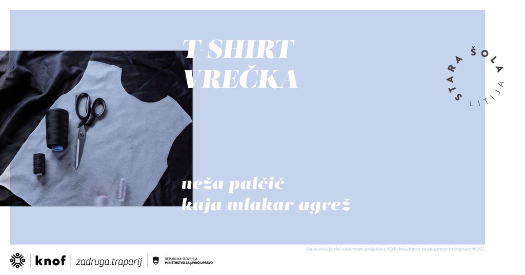 Na tokratni delavnici kreativne reciklaže bomo izdelali VREČKE ZA VEČKRATNO UPORABO. Neža Palčič bo predstavila način predelave majice s šivalnim strojem, Kaja Mlakar-Agrež pa način kako nastane vrečka povsem brez šivanja.