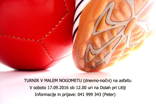 ŠD DOLE PRI LITIJI prireja v soboto 17.09.2016 dnevno-nočni malo nogometni turnir na asfaltu s pričetkom ob 12.00 uri.