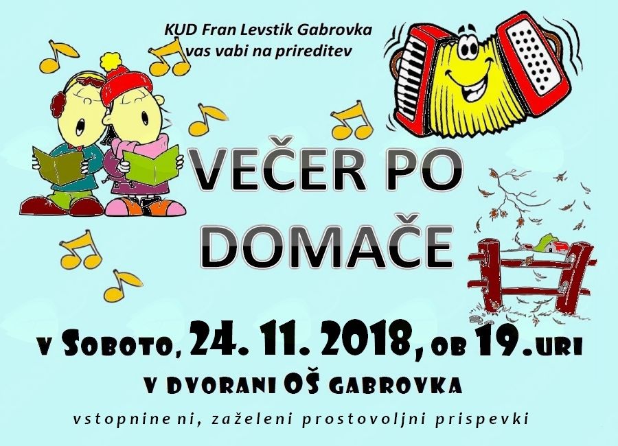 v soboto, 24. novembra 2018, ob 19.uri, v dvorani OŠ Gabrovka.