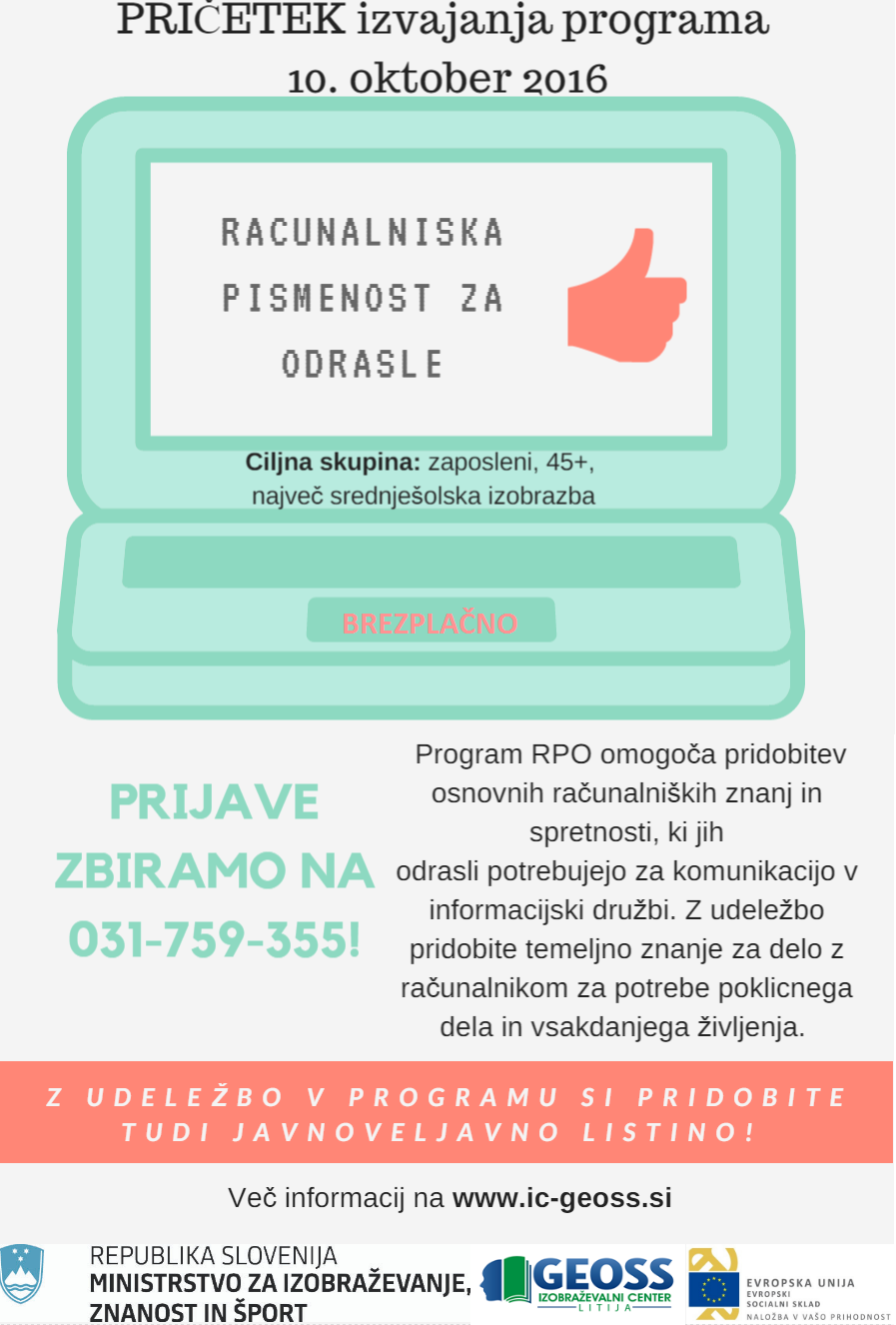 ZBIRAMO PRIJAVE v jezikovne tečaje - ANGLEŠČINA (SPLETNO UČENJE TUJEGA JEZIKA) ter RAČUNALNIŠKO PISMENOST ZA ODRASLE.