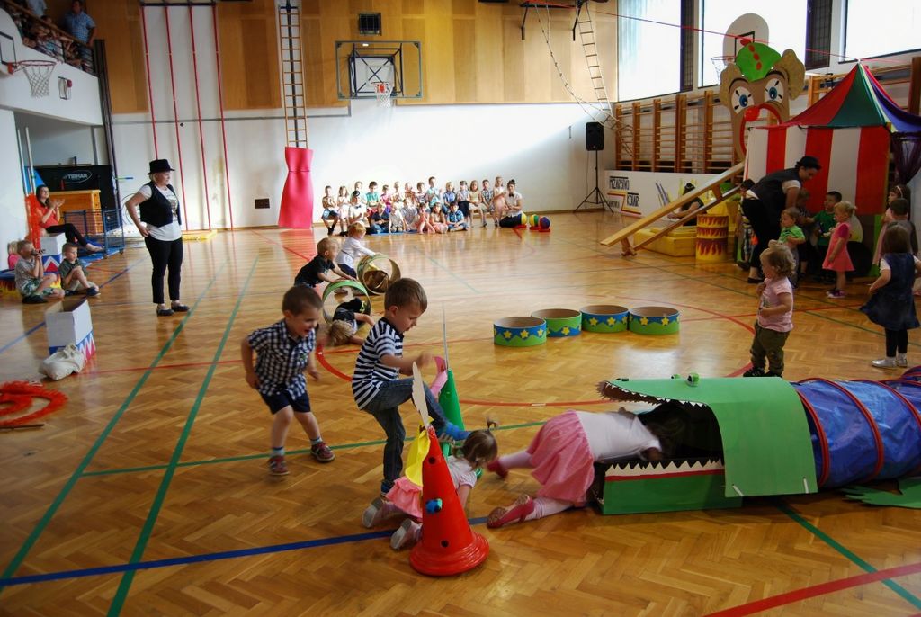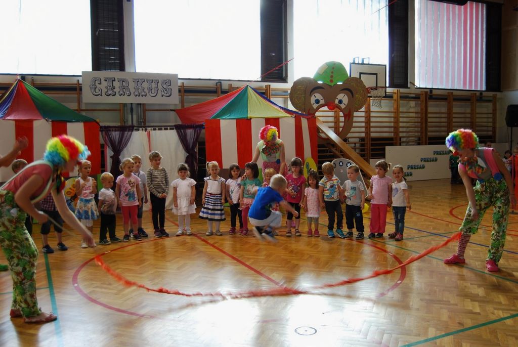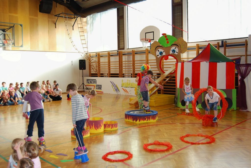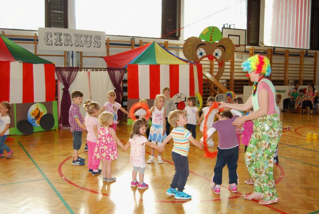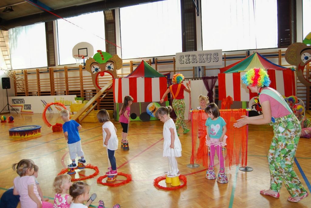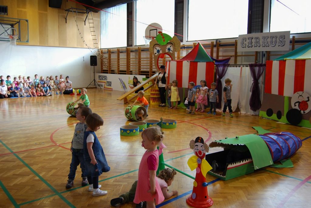 Preko igre se je odvijal tudi njihov zaključni nastop, ki ga je povezovala rdeča nit »cirkus«. Kot nastopajoči cirkusanti so otroci zelo uživali. Pokazali so veliko različnih gibalne sposobnosti. Vsi, od najmlajših enoletnikov, do šestletnikov, so se izkazali kot zelo pogumni, spretni, samozavestni… Za nekatere najmlajše je bil to prvi nastop pred tako veliko množico. Veliki aplavzi navzočih so jim dali še več energije. In cirkuški nastop se je uspešno končal, z velikim nasmeškom na obrazu.