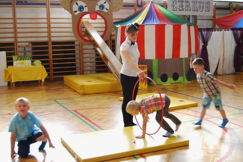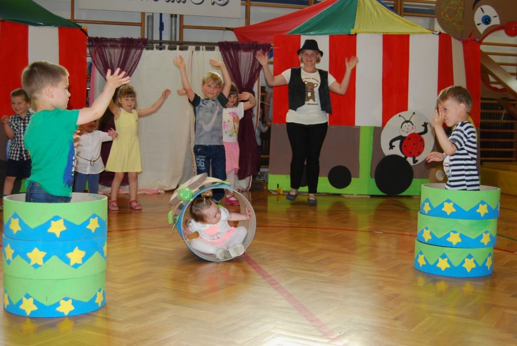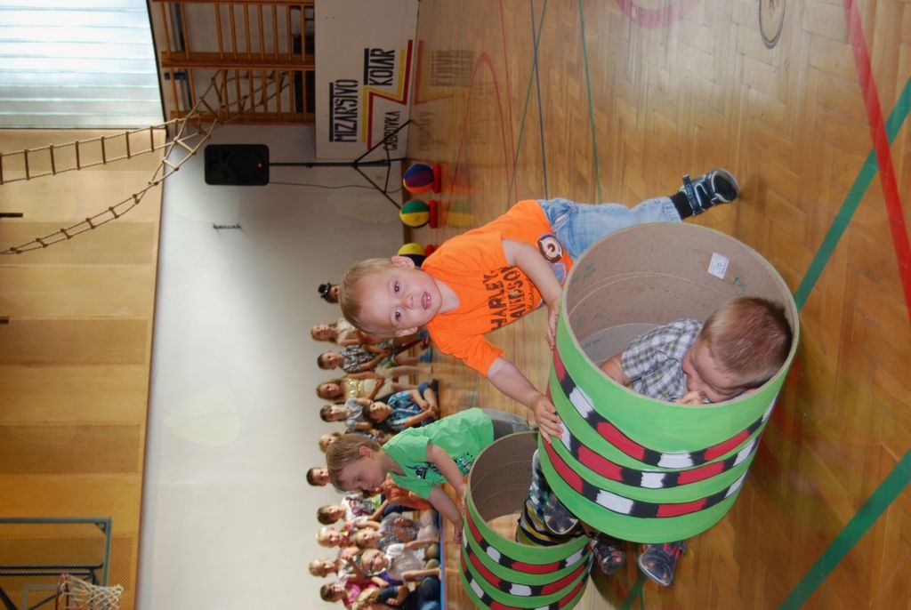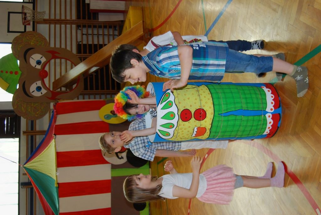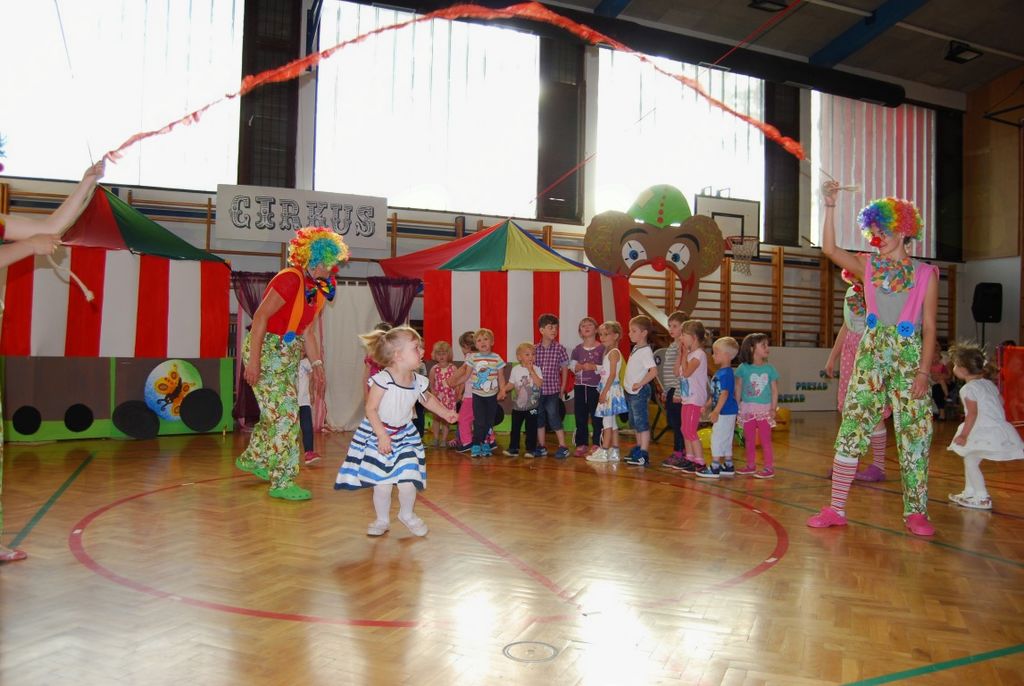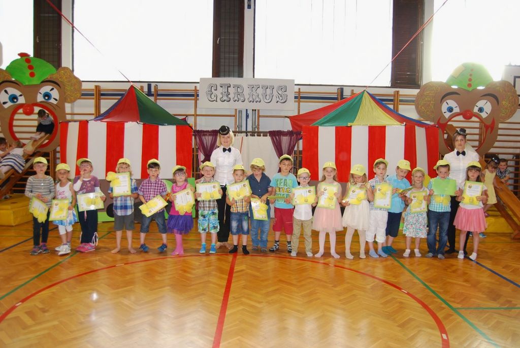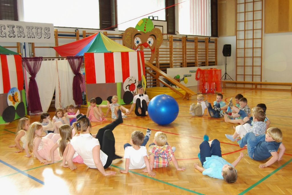 Preko igre se je odvijal tudi njihov zaključni nastop, ki ga je povezovala rdeča nit »cirkus«. Kot nastopajoči cirkusanti so otroci zelo uživali. Pokazali so veliko različnih gibalne sposobnosti. Vsi, od najmlajših enoletnikov, do šestletnikov, so se izkazali kot zelo pogumni, spretni, samozavestni… Za nekatere najmlajše je bil to prvi nastop pred tako veliko množico. Veliki aplavzi navzočih so jim dali še več energije. In cirkuški nastop se je uspešno končal, z velikim nasmeškom na obrazu.